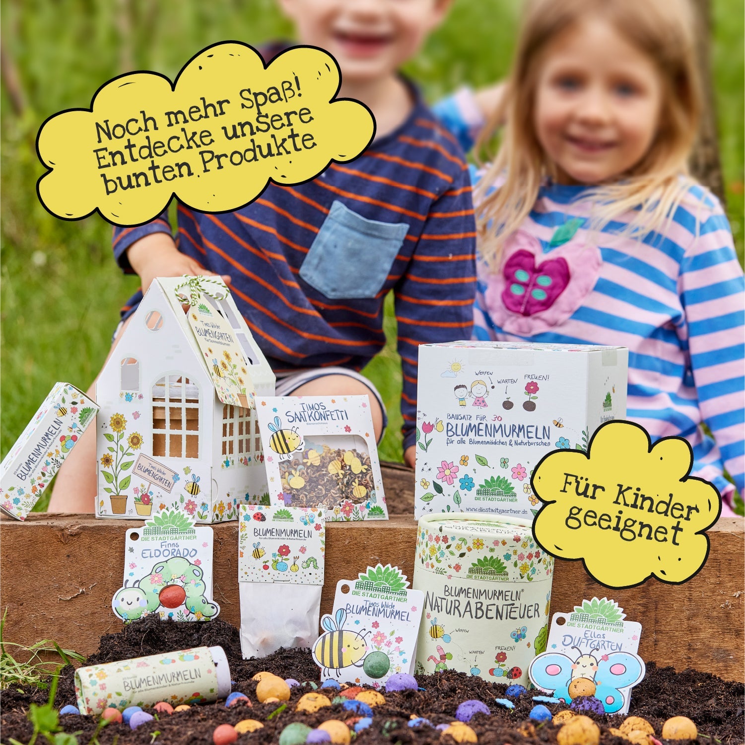 Wir lieben unsere Verpackungen und glauben, dass es schwer wird, unsere Blumenmurmeln besser zu verpacken als wir es tun. Du willst es trotzdem probieren? Kein Problem, hier kannst du unverpackte, farblich bunt gemischte Blumenmurmeln kaufen und kreativ selber verpacken. Wenn du magst, schick uns gerne ein Foto von deinem Ergebnis. Wir freuen uns über Ideen :-)