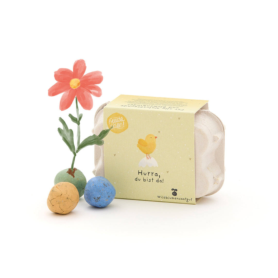 Wachsendes Babyglück: Die Saatkugeln lassen Wildblumen erblühen – draußen im Garten oder drinnen im Topf. Ein Symbol für wachsendes Leben, das perfekt zur Geburt passt. Einfach einpflanzen, gießen und staunen: Dieses Geschenk wächst mit und erinnert noch lange an einen ganz besonderen Moment.