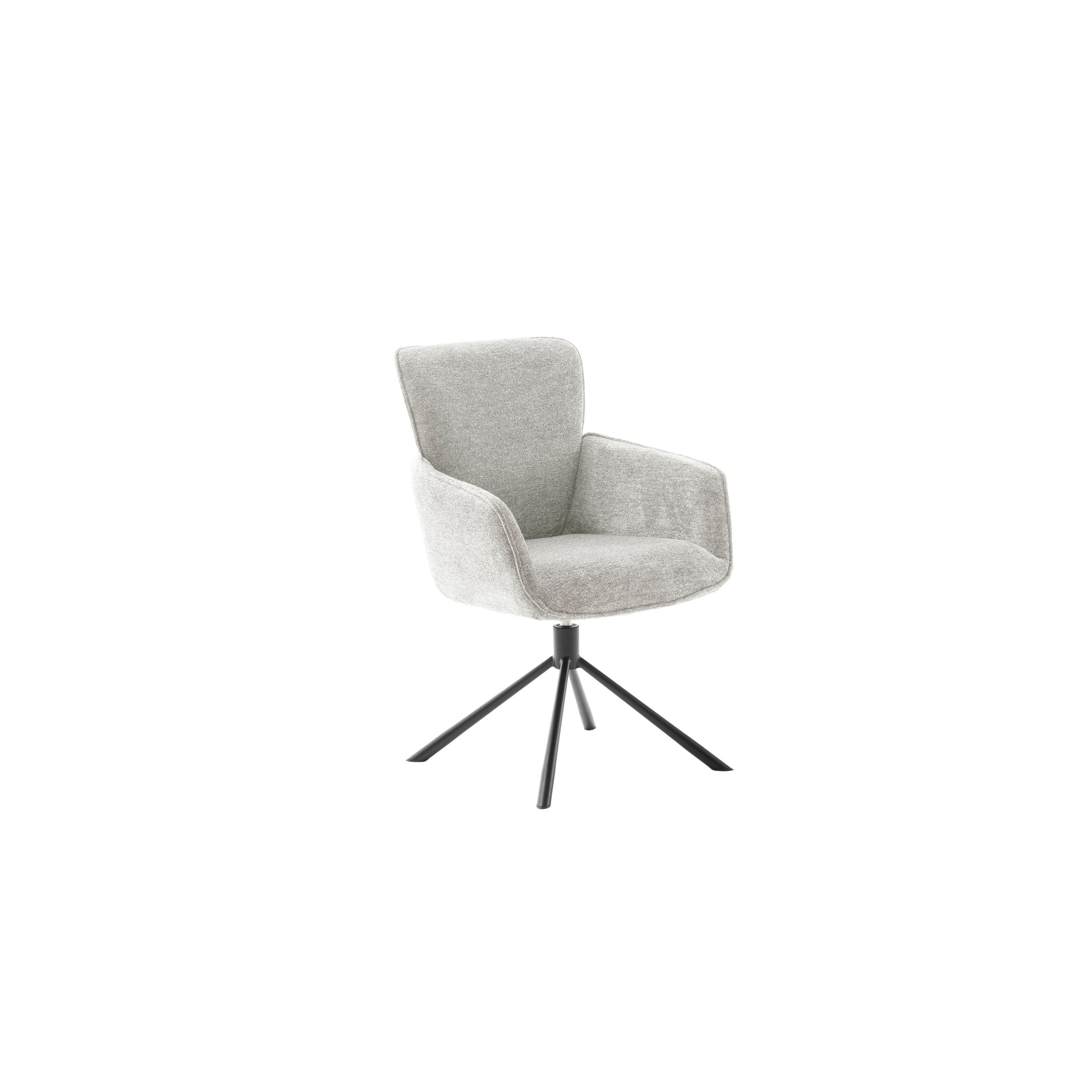 Das Gestell ist rund und konisch und wahlweise schwarz matt lackiert oder Edelstahl gebürstet – robust, langlebig und optisch hochwertig. Der Stuhl ist 360° drehbar und verfügt über eine integrierte Nivellierung, die auch auf unebenen Böden für sicheren Halt sorgt. Armlehnen unterstützen eine entspannte Sitzhaltung.