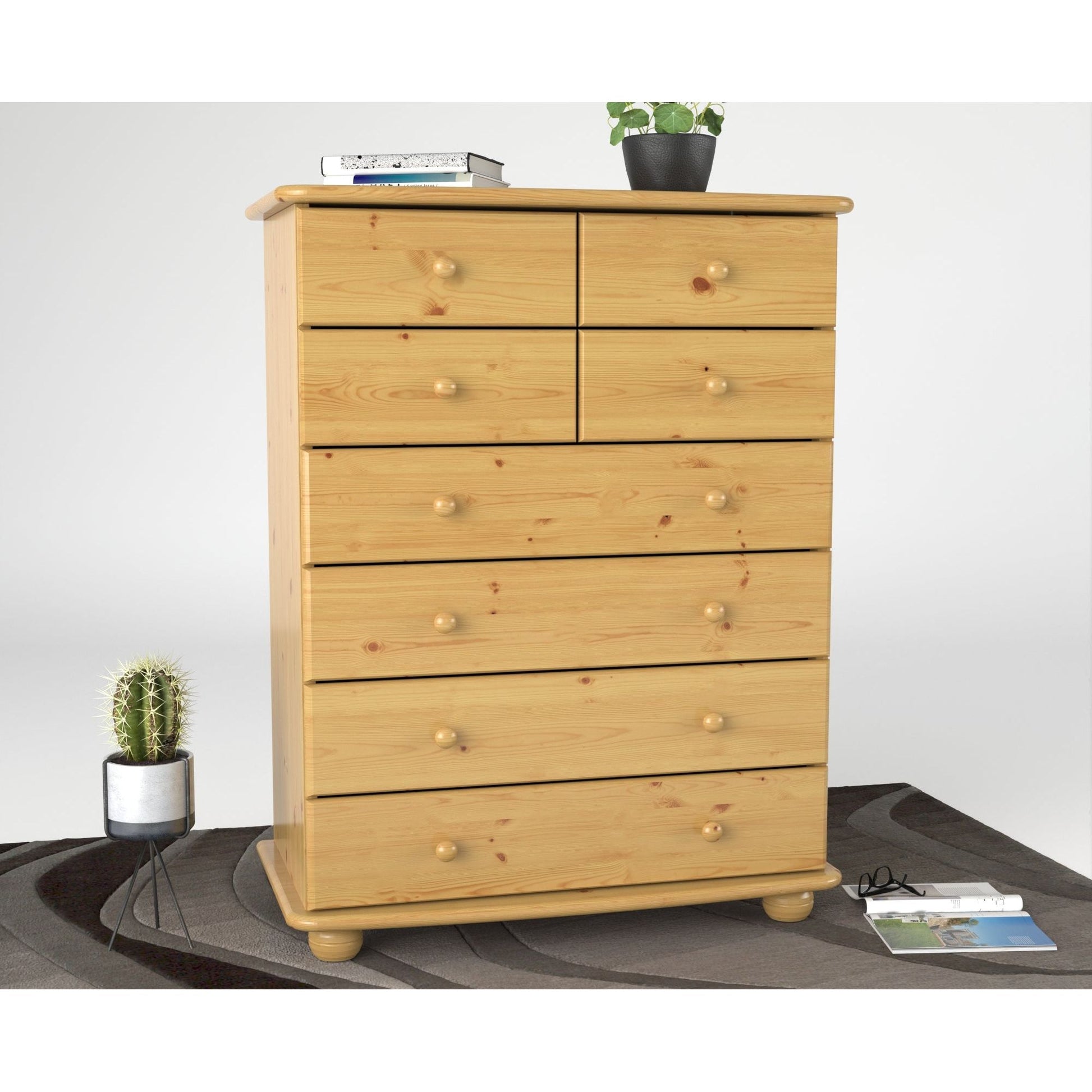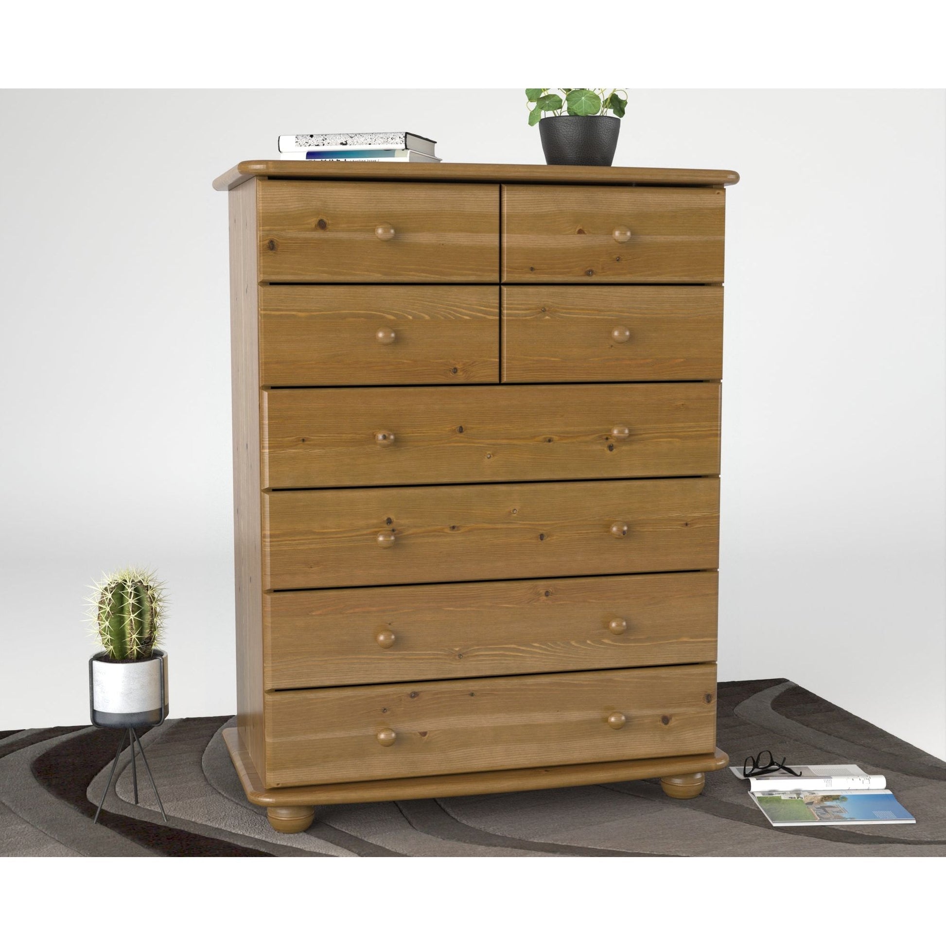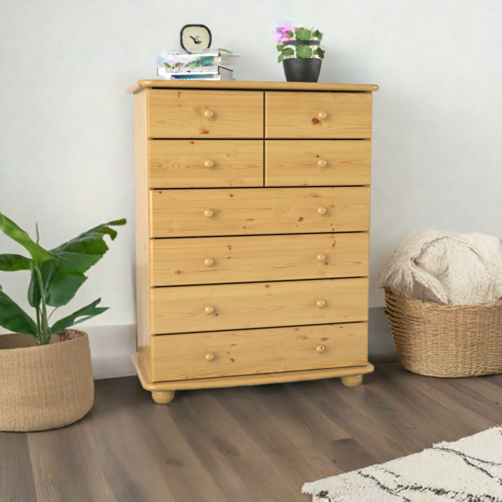 Bringen Sie mehr Ordnung und stilvolle Natürlichkeit in Ihr Zuhause – bestellen Sie jetzt Ihre Bio Kiefer Massivholz Kommode mit 8 Schubladen!