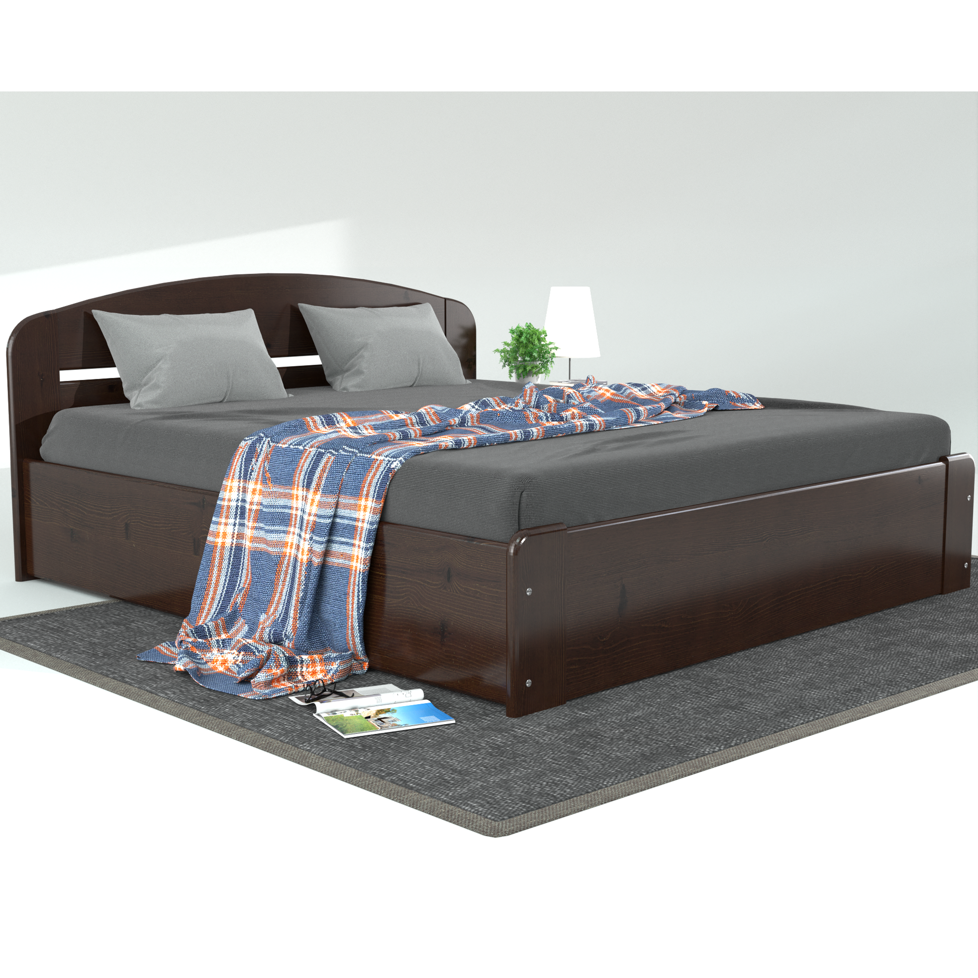 1 x Bettgestell wie abgebildet inkl. Lattenrost ohne Dekoration.