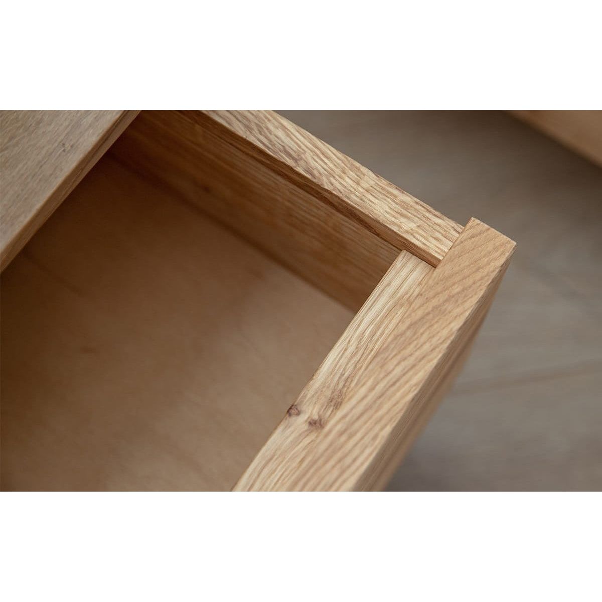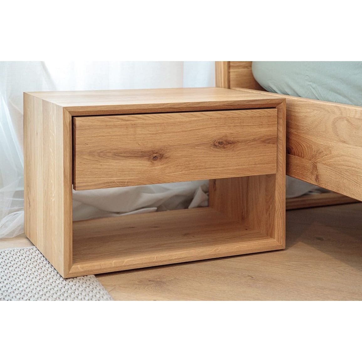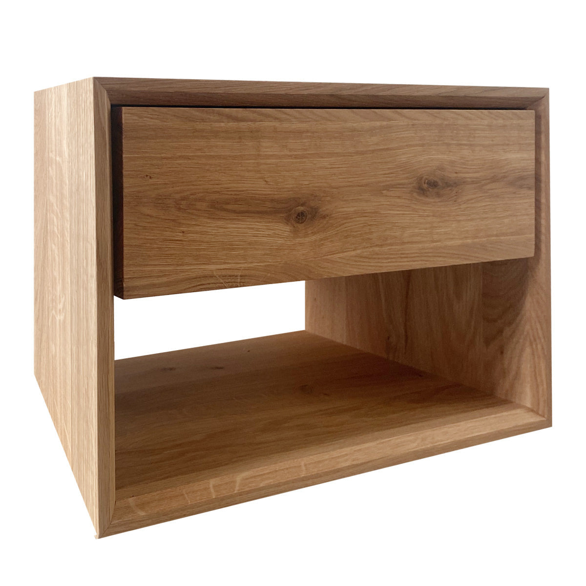 Gefertigt aus robustem Eichenholz, bietet dieser Nachttisch nicht nur Stabilität, sondern auch eine einzigartige, natürliche Maserung – jedes Stück ist ein Unikat.