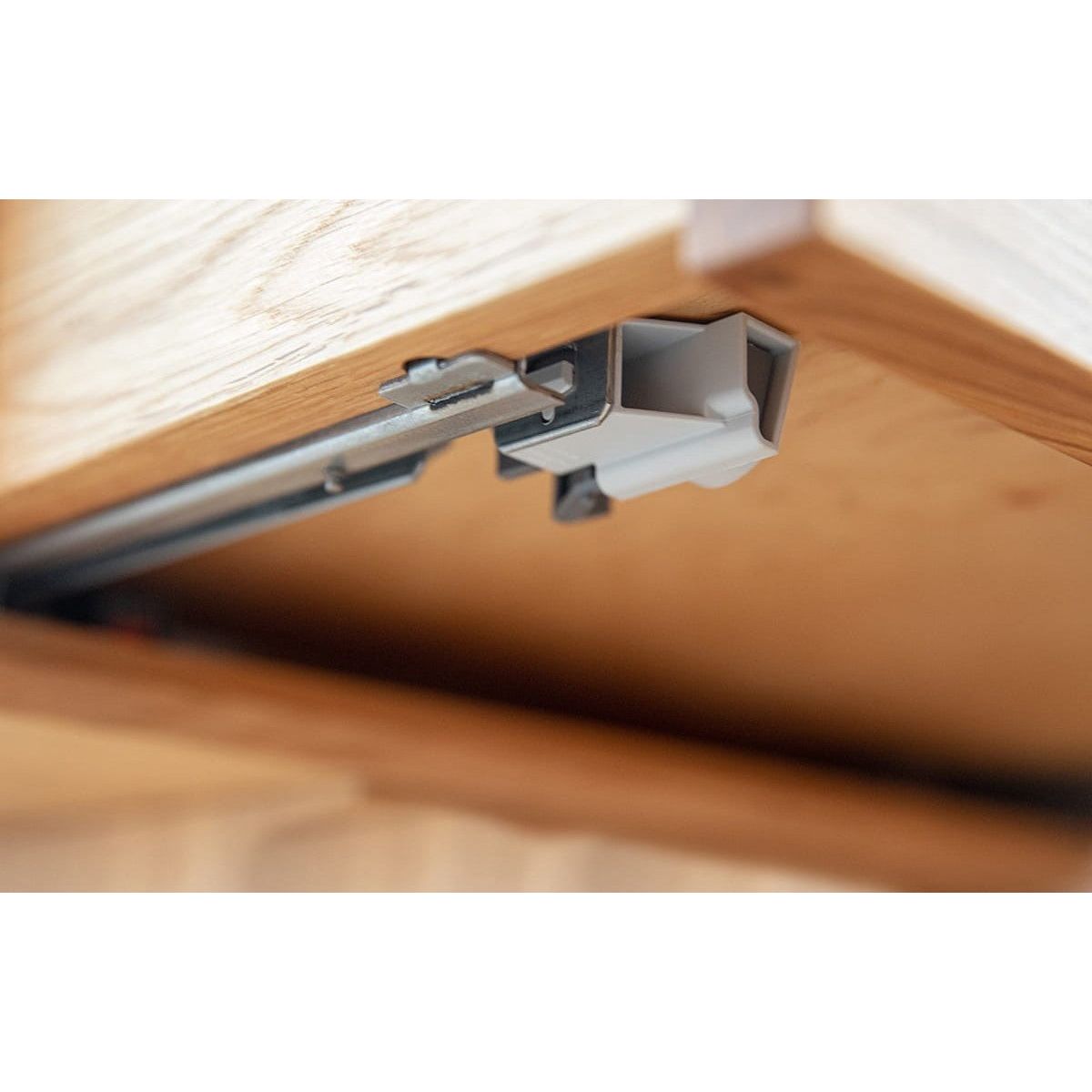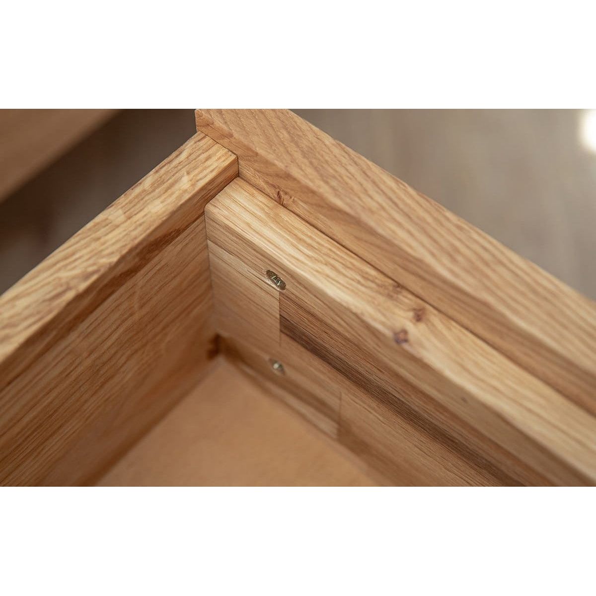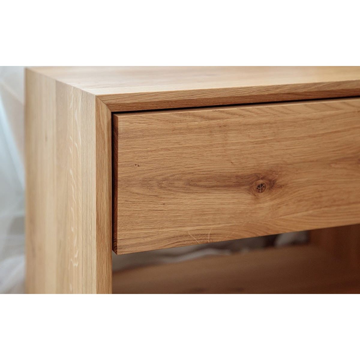 Gefertigt aus robustem Eichenholz, bietet dieser Nachttisch nicht nur Stabilität, sondern auch eine einzigartige, natürliche Maserung – jedes Stück ist ein Unikat.