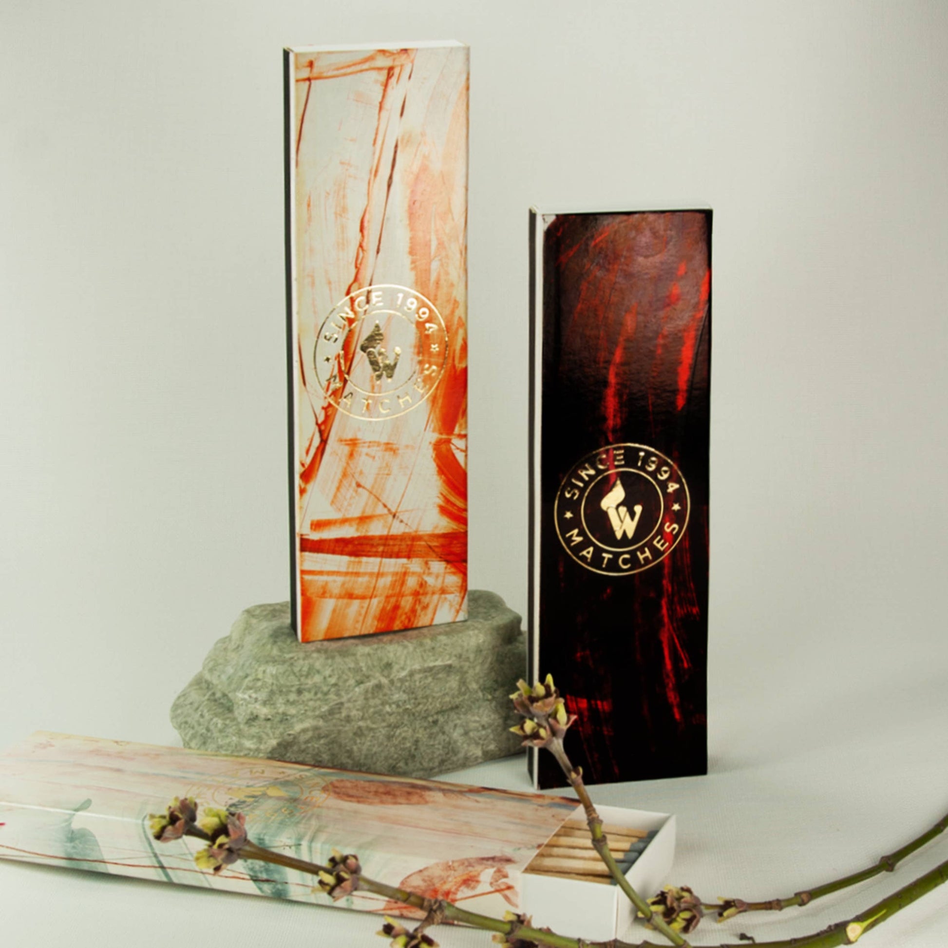 Die ART Premium Streichhölzer sind weit mehr als nur praktische Helfer – sie sind wahre Kunstwerke. Jede Box wird von Hand bemalt und ist dadurch ein Unikat – keine Schachtel gleicht der anderen. Durch die handaufgetragene Farbe erhält jede Oberfläche eine fühlbare, leicht dreidimensionale Struktur, die das Design nicht nur sichtbar, sondern auch spürbar macht.
