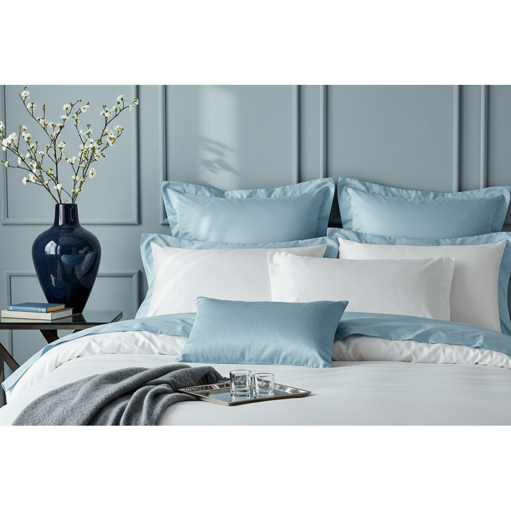 Die Aura Kollektion steht für hohe Qualität und eine bemerkenswerte Weichheit, die Ihrem Schlafraum eine beruhigende Atmosphäre verleiht. Spüren Sie die feine Textur, die sich sanft der Haut anschmiegt und zugleich langlebig ist.
