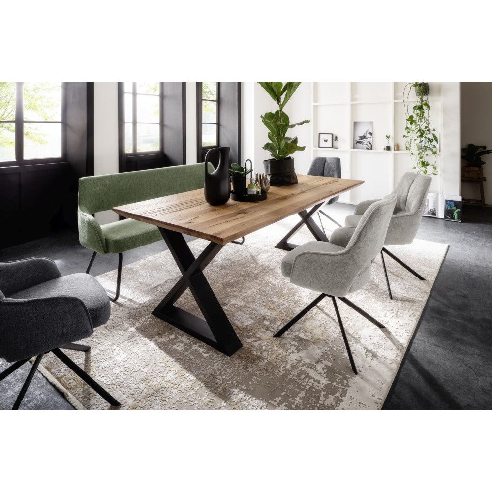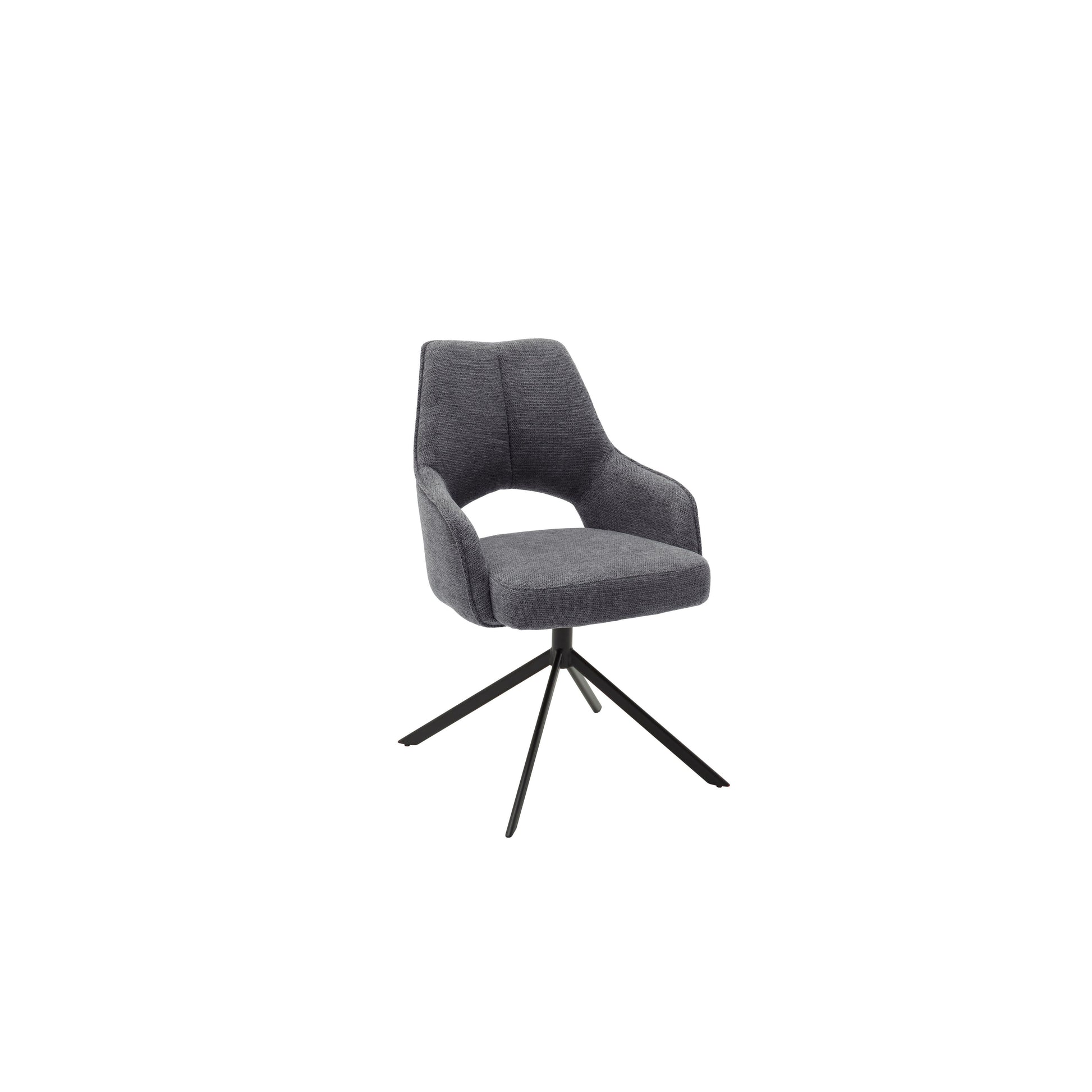 Erleben Sie zeitlose Eleganz und luxuriösen Sitzkomfort mit dem Bangor 2er Stuhl-Set – zwei Stühle mit Armlehnen in eleganter Chenille-Optik und einem robusten Schwarz Matt-Gestell.