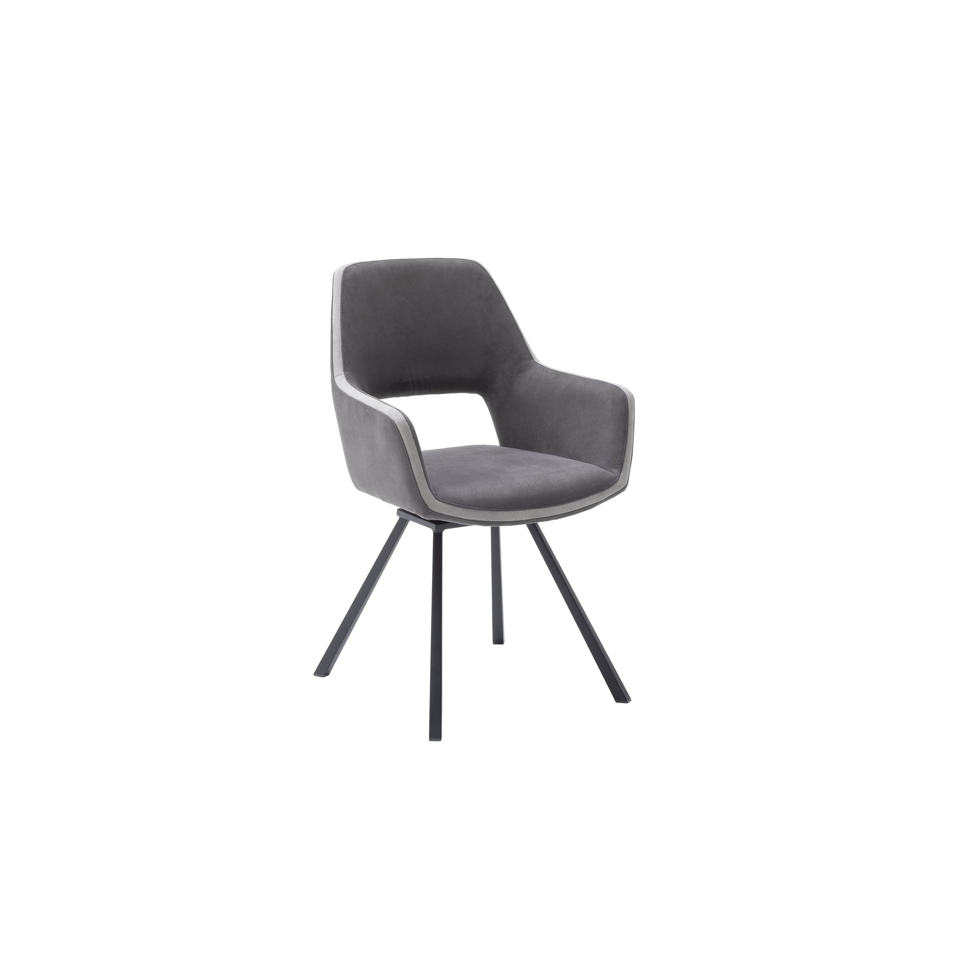 Der Bezug besteht zu 100% aus Polyester und macht Reinigung sowie Pflege besonders unkompliziert. Das robuste Kantrohr-Gestell mit konischer Form ist anthrazit lackiert und verleiht dem Stuhl eine moderne Stabilität, die verlässlich sitzt – Tag für Tag.