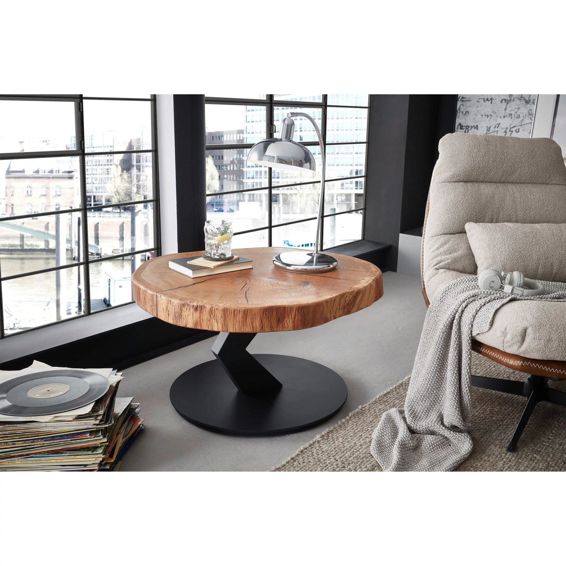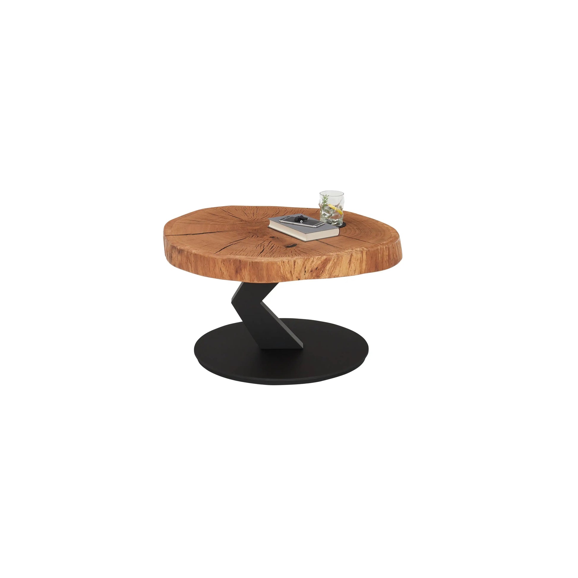 Biloxi 1 Couchtisch Aus Eiche Massiv Baumscheibe Mit Schwarzer Metallbasis Dunkel
