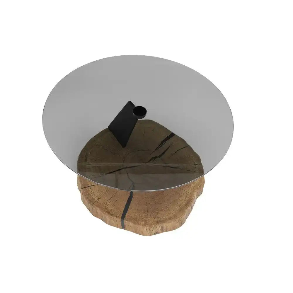 Biloxi 2 Couchtisch Glasplatte Grau Säule Metall Schwarz Bodenplatte Eiche 80 mm