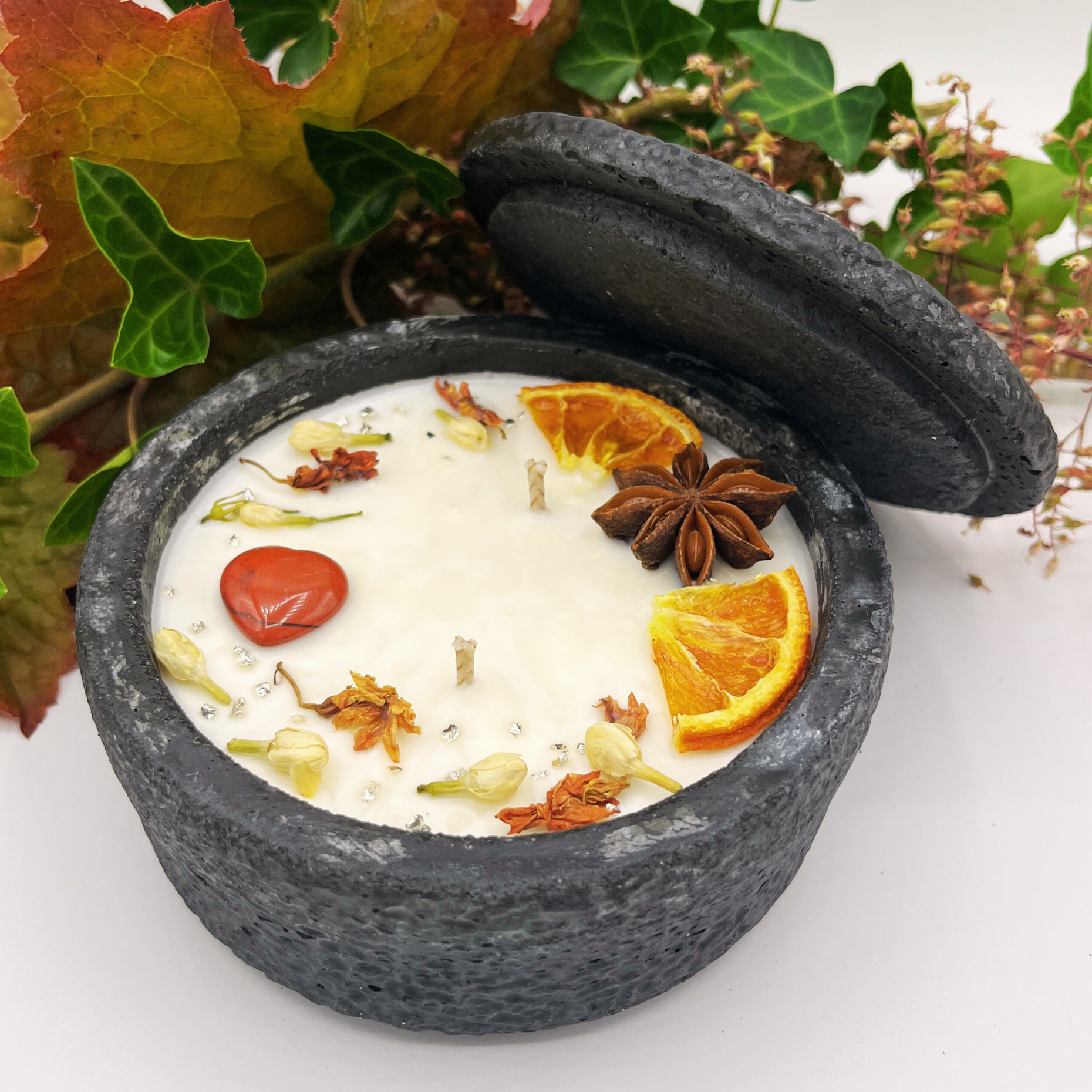 Jedes Stück ist ein limitiertes Unikat, handgefertigt mit Liebe und Sorgfalt. Perfekt für Herbst- und Winterabende Die „Black Hearts“ ist ideal für alle, die stilvolle und nachhaltige Dekoration schätzen. Ob für herbstliche Gartenpartys, romantische Winterabende, entspannte Stunden im Freien oder gemütliche Momente drinnen – diese Kerze sorgt für Wärme, Atmosphäre und Funktionalität.