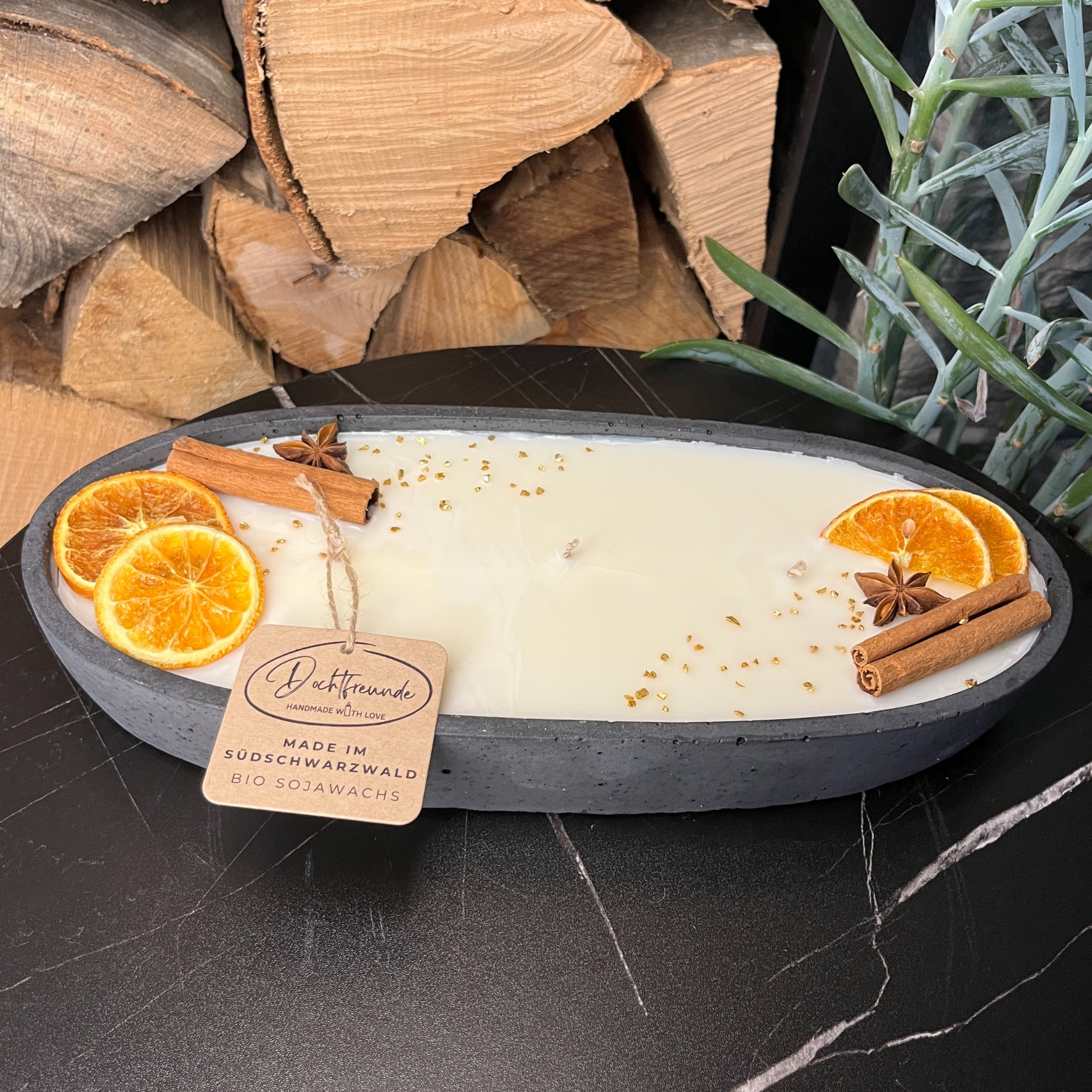 Entdecken Sie die perfekte Kombination aus Kunsthandwerk und Duft mit unserer schwarzen handgefertigten Betonduftkerze im bezaubernden Vanilla Toffee Duft. Jede Kerze ist ein einzigartiges Kunstwerk, liebevoll hergestellt von den Handwerkern von DochtFreunde im Herzen des Schwarzwaldes, Deutschland. Diese Kerze vereint Luxus und Natur und ist ideal, um Ihre Wohnräume während der gemütlichen Herbst- und magischen Weihnachtszeit zu bereichern. Unsere Kerzen werden aus premium biologischem Sojawachs hergestellt, das einen sauberen und langanhaltenden Brennvorgang gewährleistet. Der unwiderstehliche Duft von süßer Vanille und reichem Toffee erfüllt Ihren Raum mit einer einladenden Atmosphäre, die perfekt für jede Gelegenheit ist.
