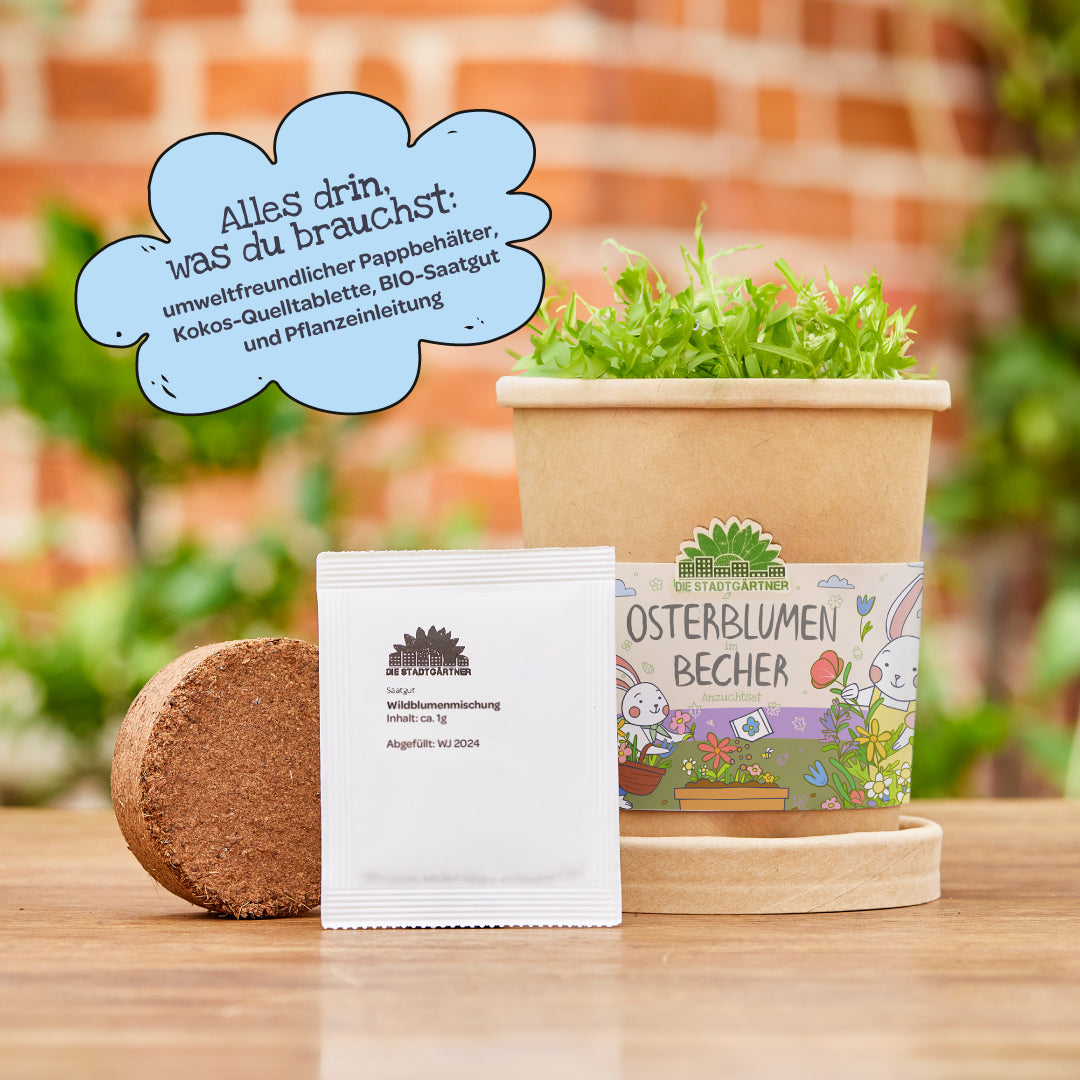 Alles drin: Der umweltfreundliche Anzuchtbecher enthält eine Kokos-Quelltablette und hochwertiges Blumensaatgut. Perfekt für Balkon, Garten oder Fensterbank – kinderleichte Anwendung und ein tolles Naturerlebnis für Groß und Klein.