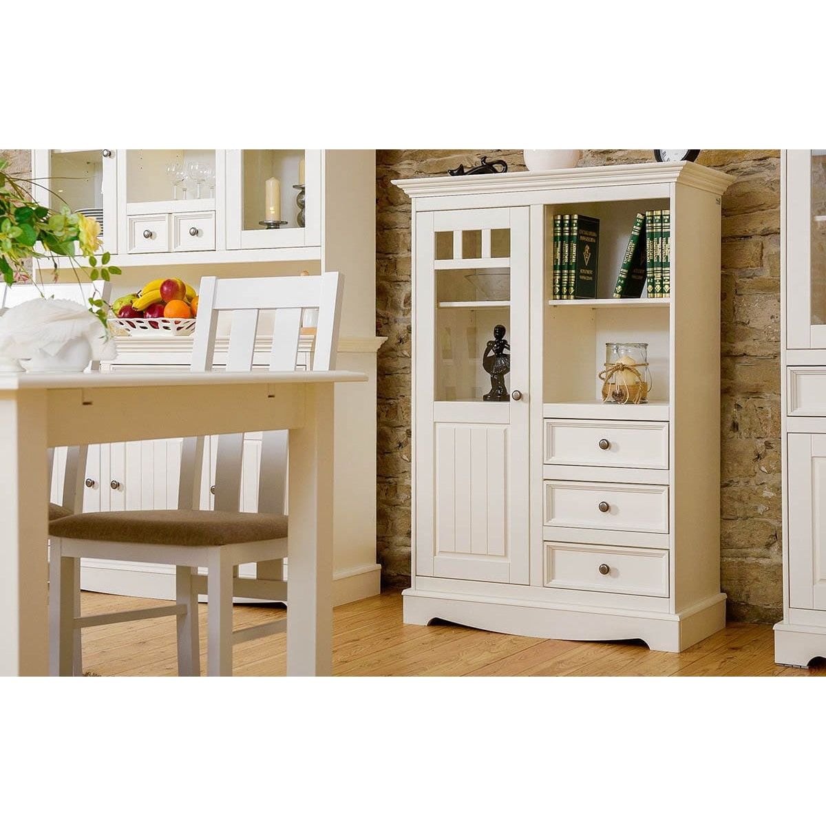 Diese Glasvitrine ist Teil der Bologna Elegante Kollektion, die Ihnen eine große Auswahl an stilvollen Möbeln bietet. Ergänzen Sie Ihr Zuhause mit passenden weißen Kommoden, TV-Schränken oder weiteren Wohnzimmermöbeln aus dieser hochwertigen Serie.