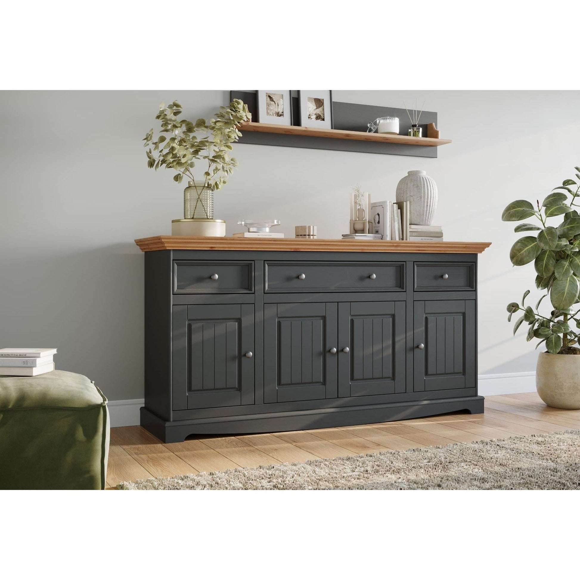 Sie suchen zusätzlichen Stauraum oder möchten Ihre Dekoration stilvoll präsentieren? Das Bologna Elegante Regal-Set in Graphit mit natürlicher Kiefernholzplatte ist die ideale Lösung. Diese hochwertigen Wandregale verbinden schlichte Eleganz mit rustikalem Charme und passen perfekt zur gesamten Bologna Elegante Kollektion.