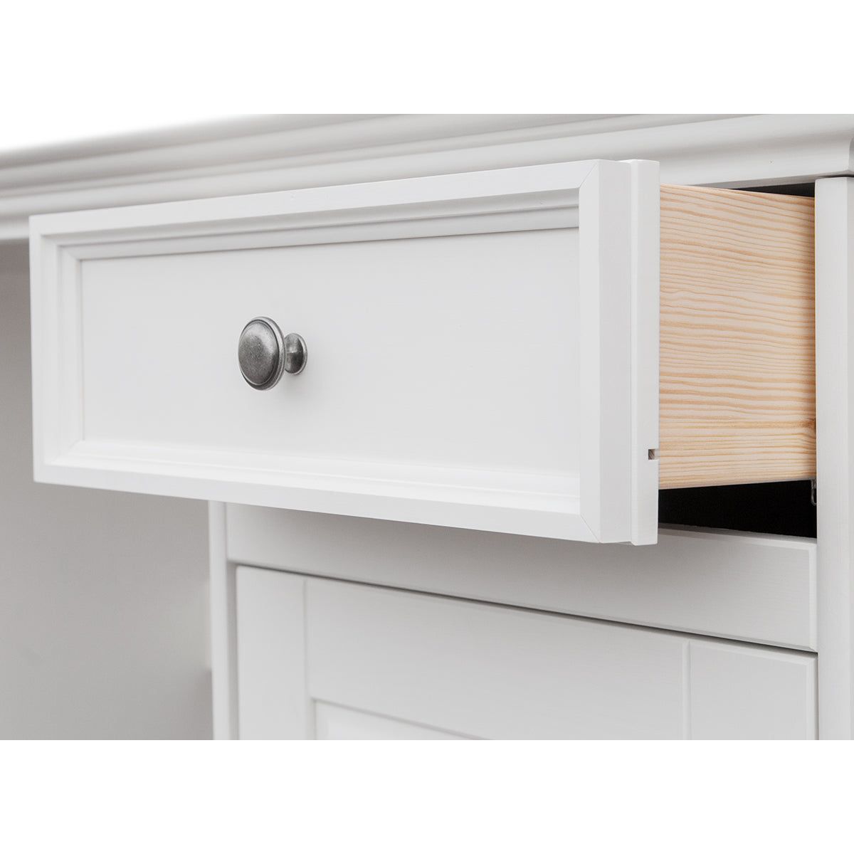 ✔ Dekorative Fräsungen & stilvolle Metallgriffe in Antiksilber – verleiht dem Schreibtisch eine elegante Note