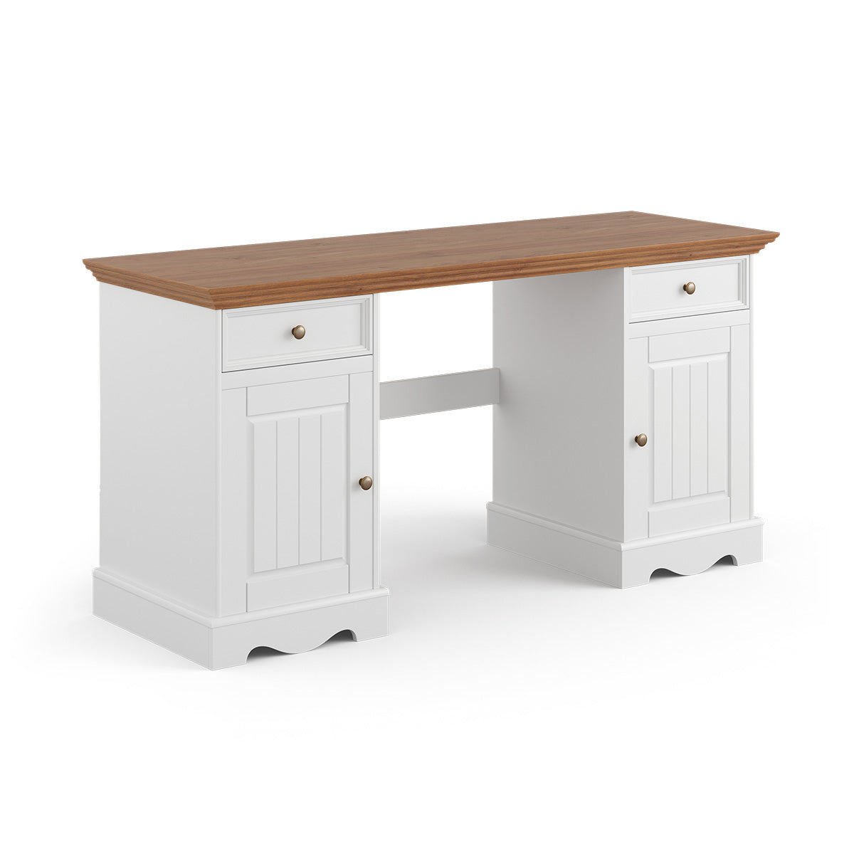 Ein Schreibtisch aus Massivholz, der Ästhetik mit hoher Funktionalität vereint. Die Kombination aus Weiß und natürlichem Holz schafft einen stilvollen Blickfang, der auch in den kommenden Jahren modern bleibt. Dank hochwertiger Materialien und präziser Verarbeitung überzeugt dieses Möbelstück nicht nur optisch, sondern auch in puncto Langlebigkeit und Qualität.