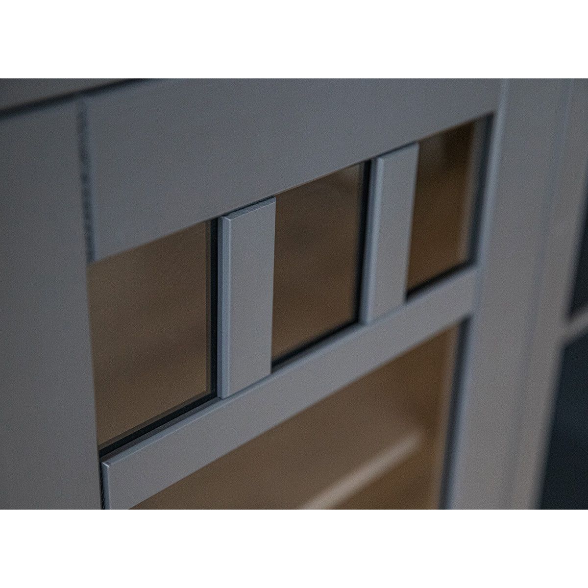 Diese elegante Vitrine aus finnischem Kiefernholz wurde für eine langlebige Nutzung konzipiert. Das robuste Holz stammt aus nachhaltiger Forstwirtschaft und wurde mit wasserbasiertem Graphit-Lack (Deckkraft 90 %) veredelt, sodass die natürliche Maserung sichtbar bleibt. Der obere Kranz und die Ablagefläche in warmem Eichenholzton setzen dabei einen stilvollen Kontrast.