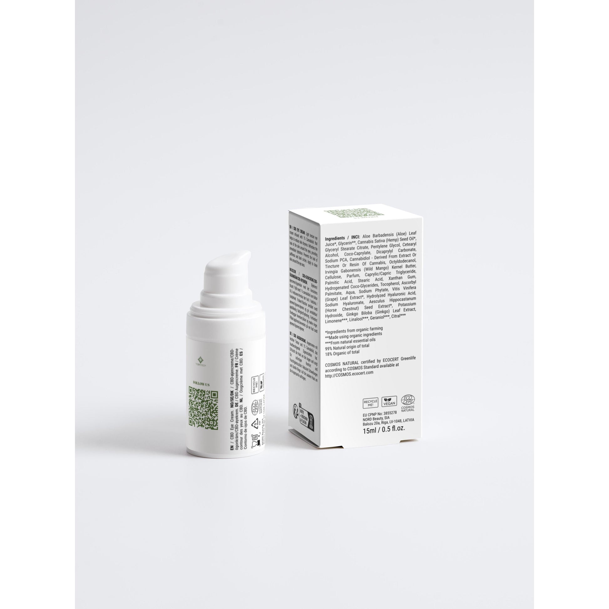 Leichte Textur, mit 1% Cannabidiol, das hautberuhigende Eigenschaften hat. Erfrischt die Haut der Augenpartie und sorgt für sofortigen Komfort und Feuchtigkeitszufuhr. Beugt Schwellungen und dunklen Augenringen vor.