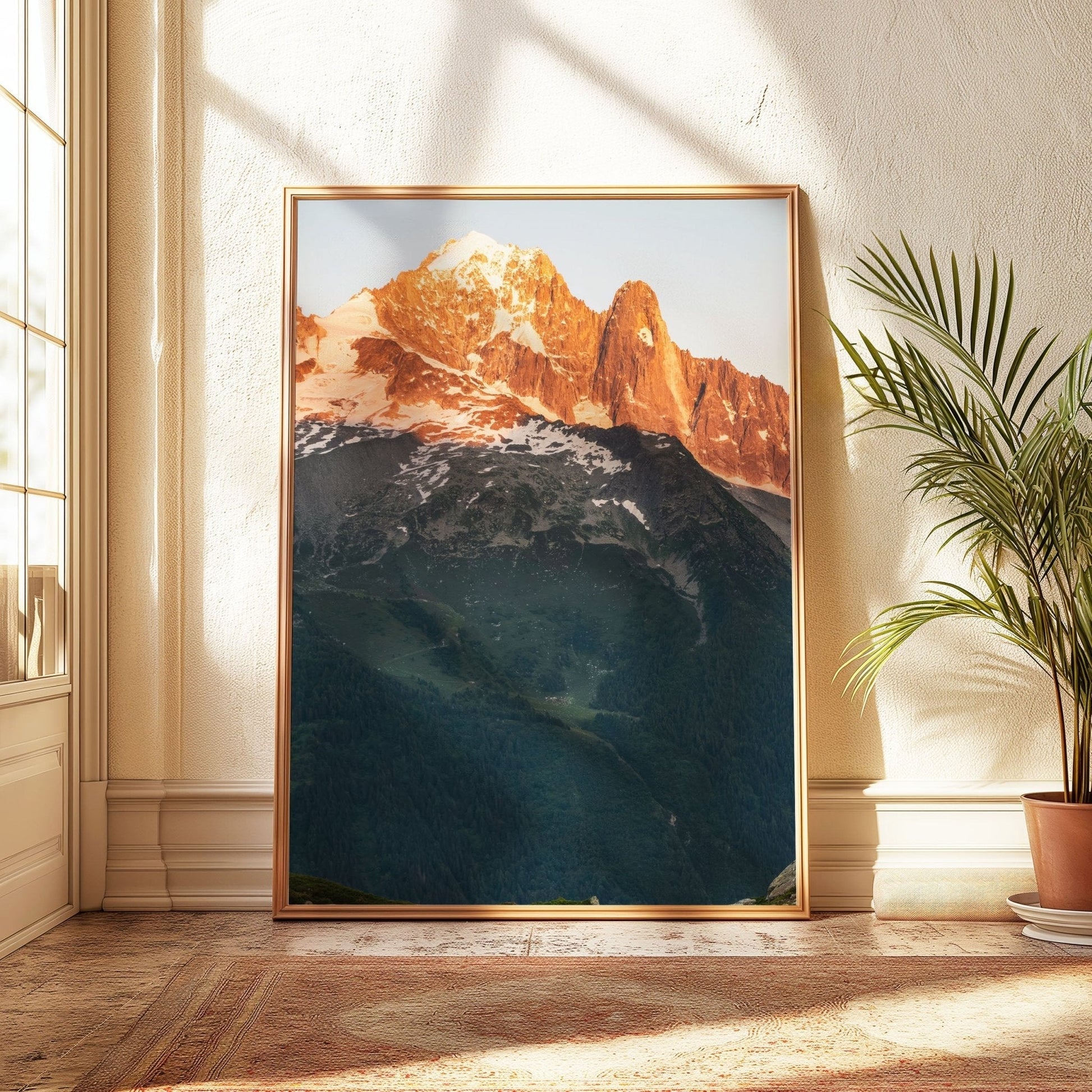 Transform your space with this breathtaking Chamonix Alps sunset triptych featuring the iconic Aiguille Verte, Mer de Glace, and Grandes Jorasses. Captured in stunning golden light, this photographic wall art showcases the rugged beauty of the French Alps, including the Needles of Chamonix. Perfect for lovers of alpine landscapes, this premium-quality triptych is available in various sizes to suit your home or office. A unique and timeless addition for mountain enthusiasts and art collectors alike.