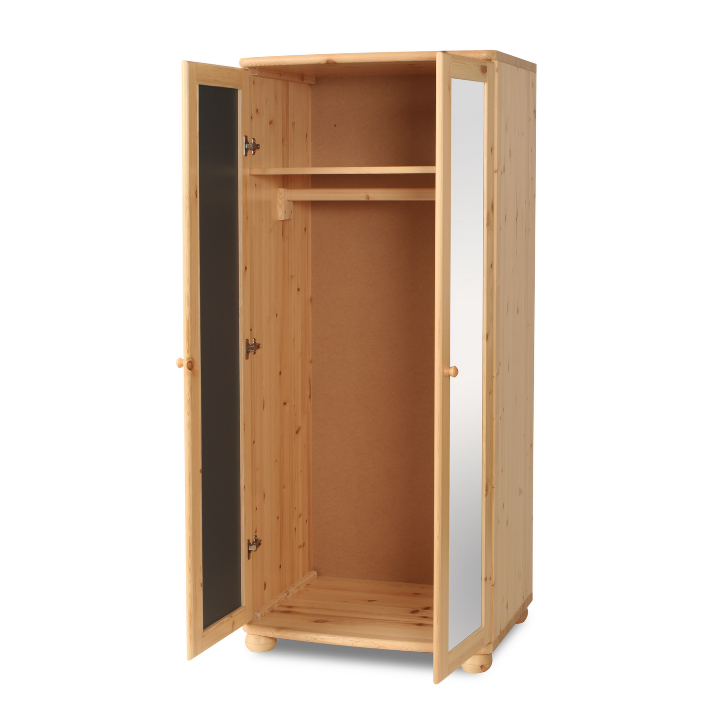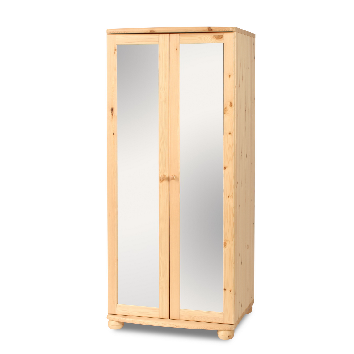 Claudia Kleiderschrank Spiegelschrank | 2-Türig mit Kleiderstange | 100% Bio Kiefer Massivholz