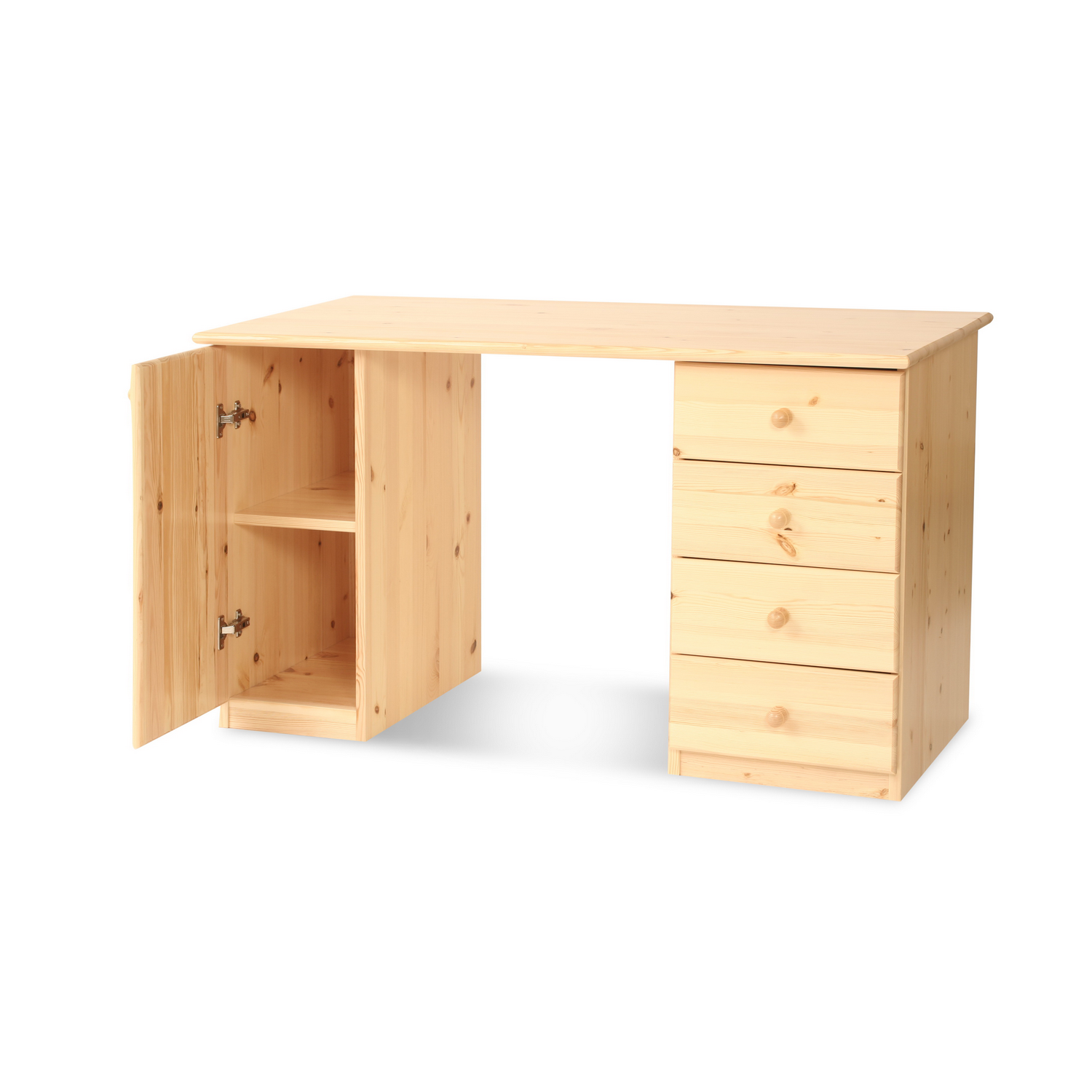 Der Claudia Schreibtisch mit 4 Schubladen und 1 Tür vereint Funktionalität, Natürlichkeit und langlebige Qualität.