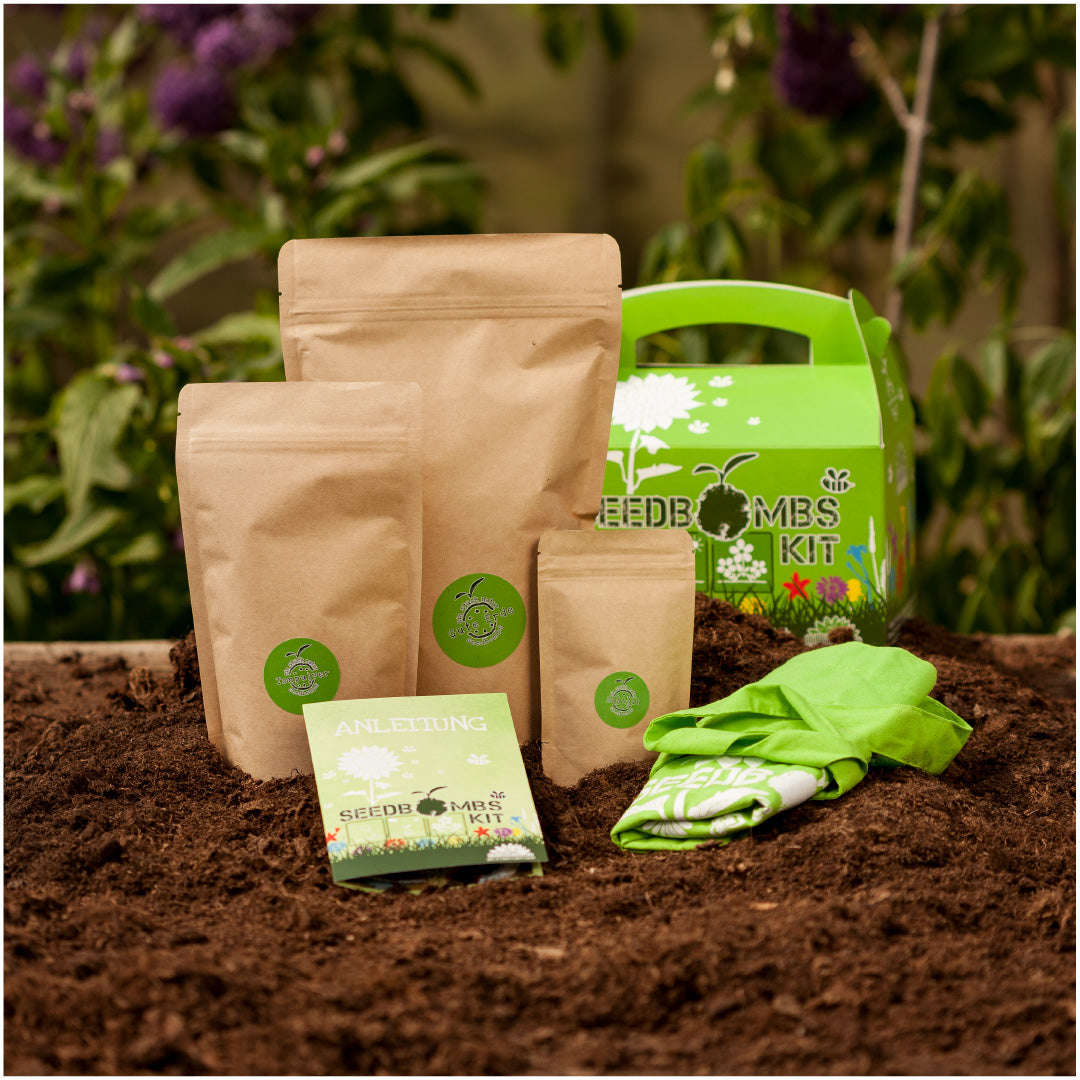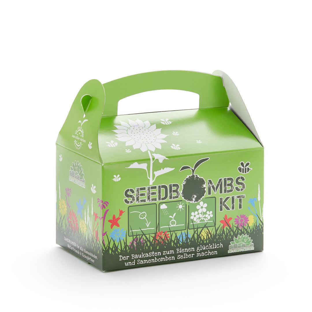 Für alle, die sich gerne die Hände schmutzig machen: Der Samenbomben-Bausatz enthält gesiebte, schwarze Erde, feinen Ton, dieselbe Saatmischung wie unser Bienenschmaus, eine ausführliche Anleitung mit Fotos und einen schicken Jutebeutel zur Aufbewahrung der fertigen Samenbomben. Die enthaltenen Zutaten reichen für etwa 50 Samenbomben und machen jede Kindergeburtstagsparty zu einem einmaligen Erlebnis!