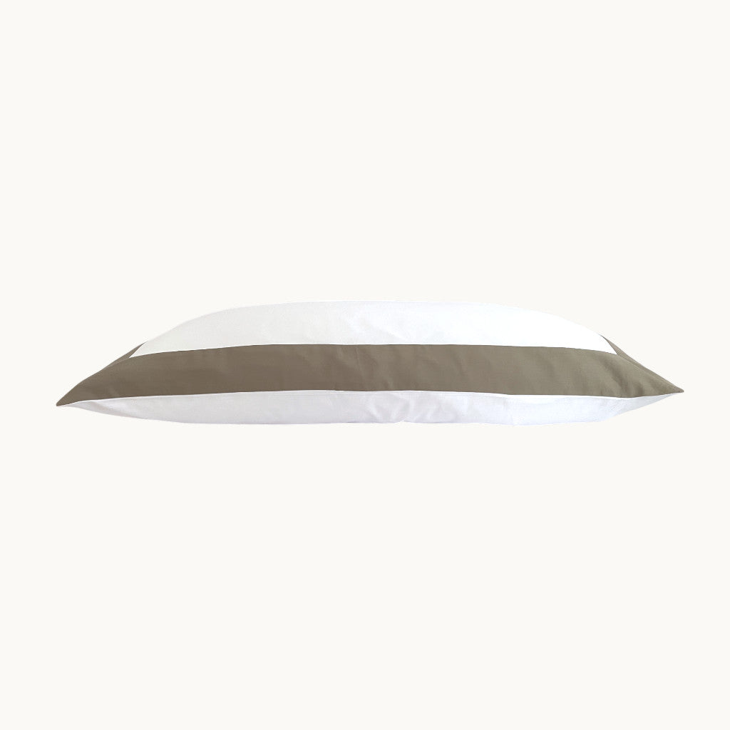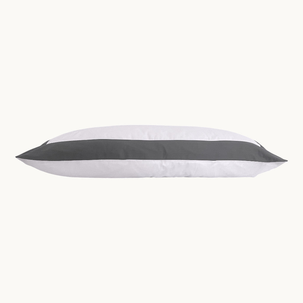 Erleben Sie Schlafkomfort auf höchstem Niveau mit dem Eklipse Baumwollsatin Kissenbezug. Hergestellt aus 100% ägyptischer Baumwolle mit extra langen Stapelfasern, bietet er eine luxuriöse Silhouette und eine außergewöhnliche Haltbarkeit – eingefasst in einen fein gewebten Satin mit 600 Fadendichte. Die Kombination aus einer reinen weißen Basis und breiten farbigen Rändern verleiht Ihrem Bett einen modernen, glamourösen Akzent, der sofort ins Auge fällt.