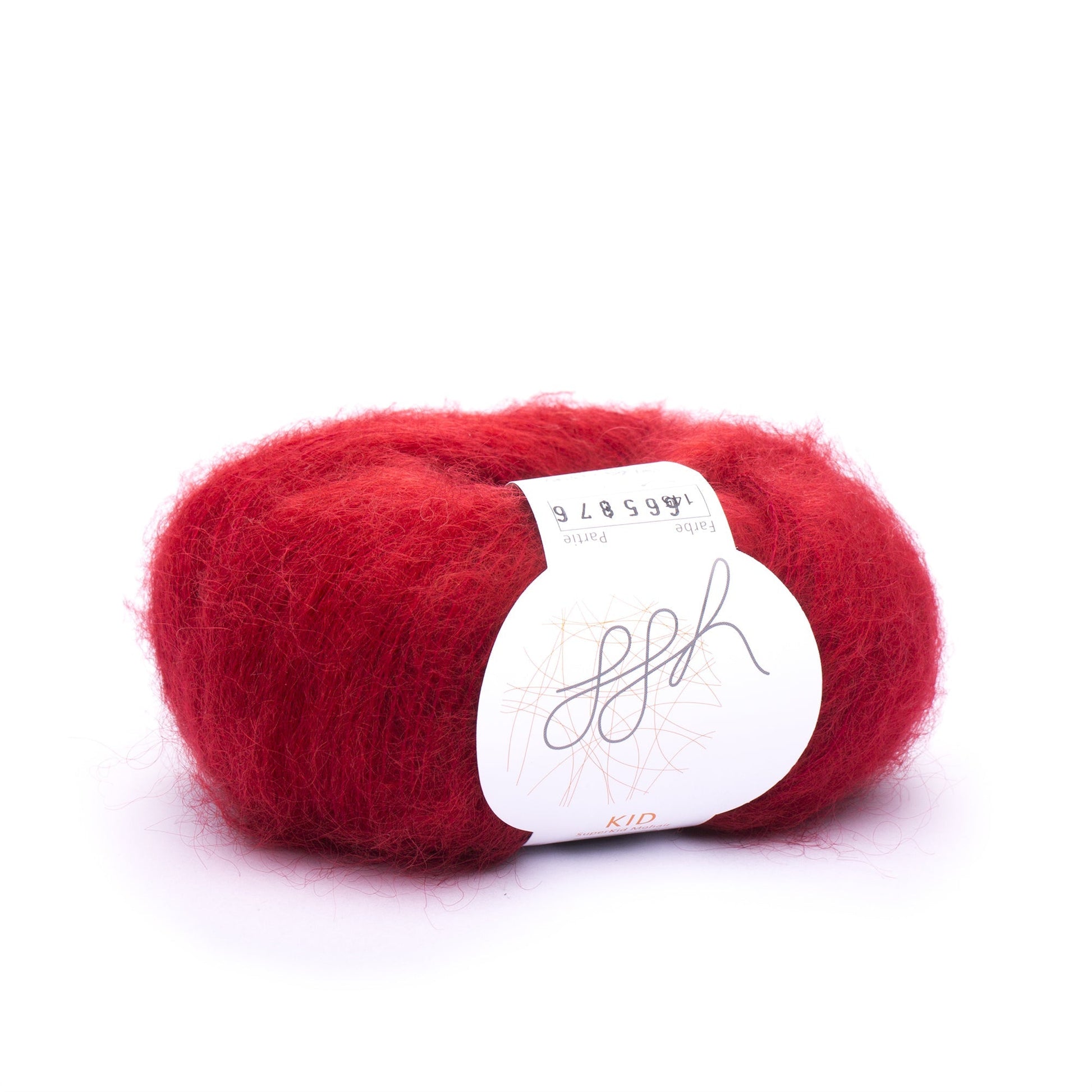 ggh Kid ist ein edles Lacegarn aus 65% Super-Kid-Mohairwolle, 5% Schurwolle und 30% Polyamid. Die Super-Kid-Mohairfaser ist besonders fein und verleiht dieser Mohairwolle ihre außergewöhnliche Leichtigkeit und den weichen, flauschigen Charakter. In der Farbe 145 - Purpurrot wirkt das Garn elegant und zeitlos – ideal für klassische Strickprojekte, die du lange lieben wirst. Mit nur ca. 150g lässt sich bereits ein Pullover stricken, der kaum spürbar auf der Haut liegt und gleichzeitig wunderbar wärmt.