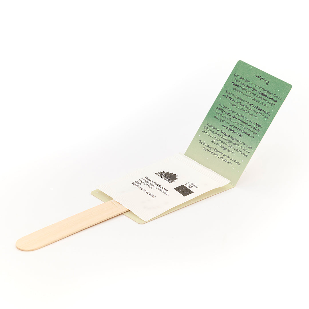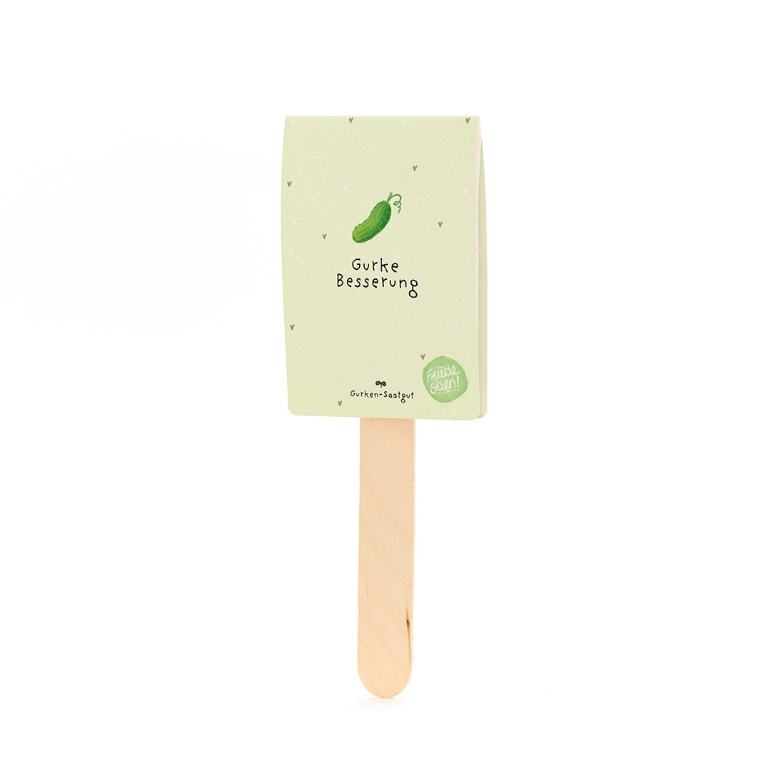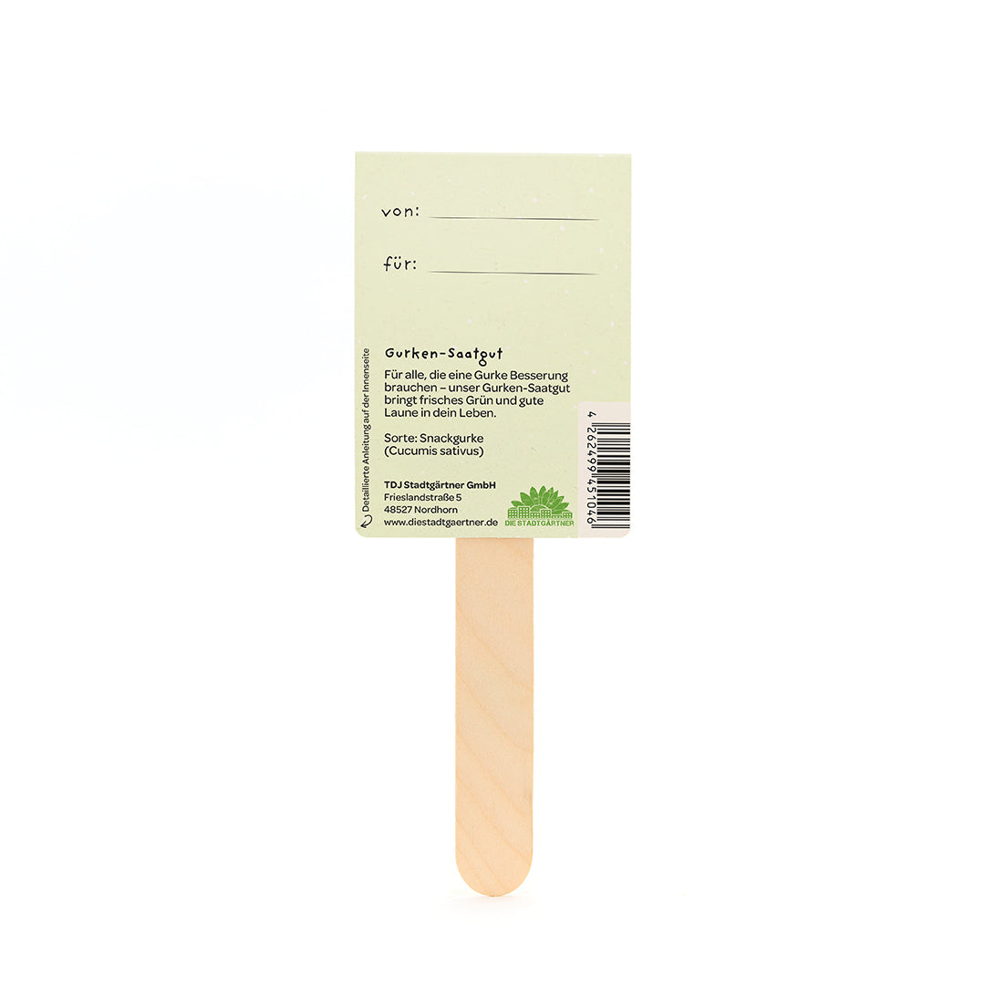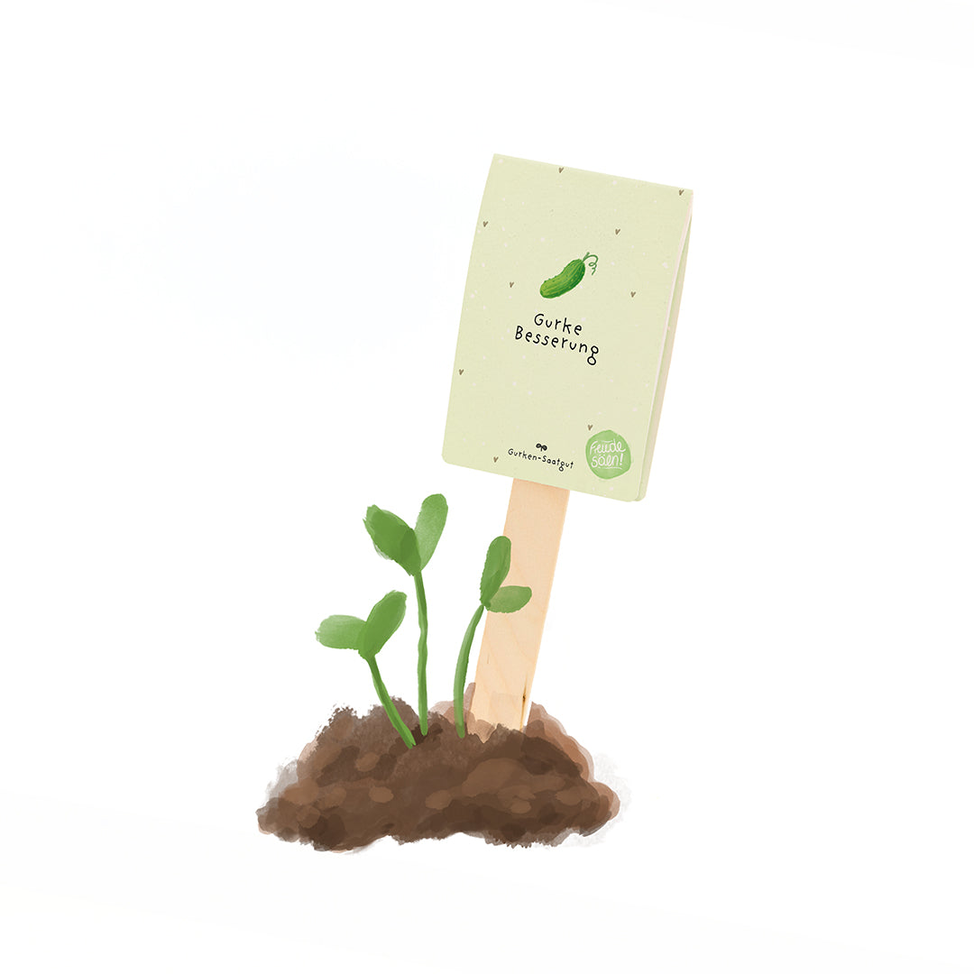 Knackiger Gruß für gute Laune: Dieser fröhliche Saatgruß mit Gurken-Saatgut ist eine charmant-witzige Art, gute Besserung zu sagen. Das niedliche Gurken-Motiv und das Wortspiel zaubern ein Lächeln ins Gesicht – und aus dem Saatgut wachsen mit etwas Geduld frische, knackige Gurken. Auf der Rückseite ist Platz für deinen Namen und den der beschenkten Person – für eine persönliche Portion Aufmunterung.