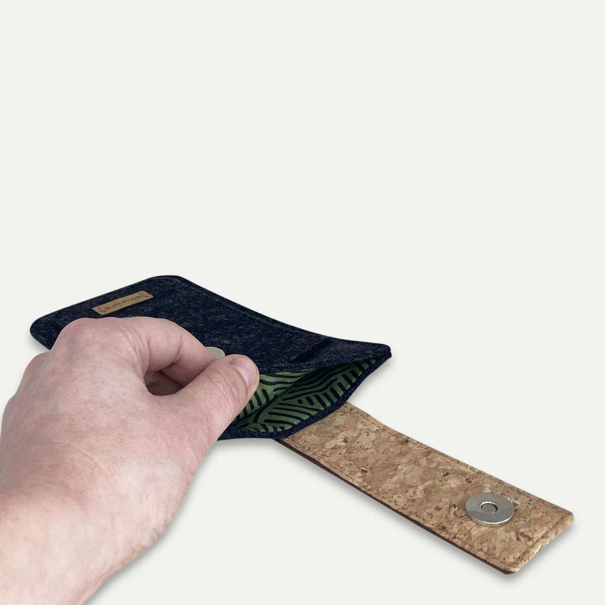Mit unserer passgenauen Handytasche ist dein Samsung Galaxy A52 rundum geschützt und immer griffbereit. Stilvoll und ohne unnötigen Schnickschnack. Gleichmäßige Nähte und sauber gearbeitete Kanten bezeugen unsere Liebe zum Detail. Dabei verarbeiten wir nachhaltige Materialien in Bio-Qualität und von ausgewählten Schäfern. Hergestellt in Deutschland in unserer eigenen Manufaktur, besticht die Tasche durch eine innovative Verschlusslasche aus robustem Kork. Der flache, magnetische Knopf garantiert Sicherheit und Stil zugleich. Ein integriertes Fach an der Vorderseite ermöglicht schnellen Zugriff auf Kopfhörer, Ladekabel oder andere Kleinigkeiten, damit alles sicher und übersichtlich verstaut ist.