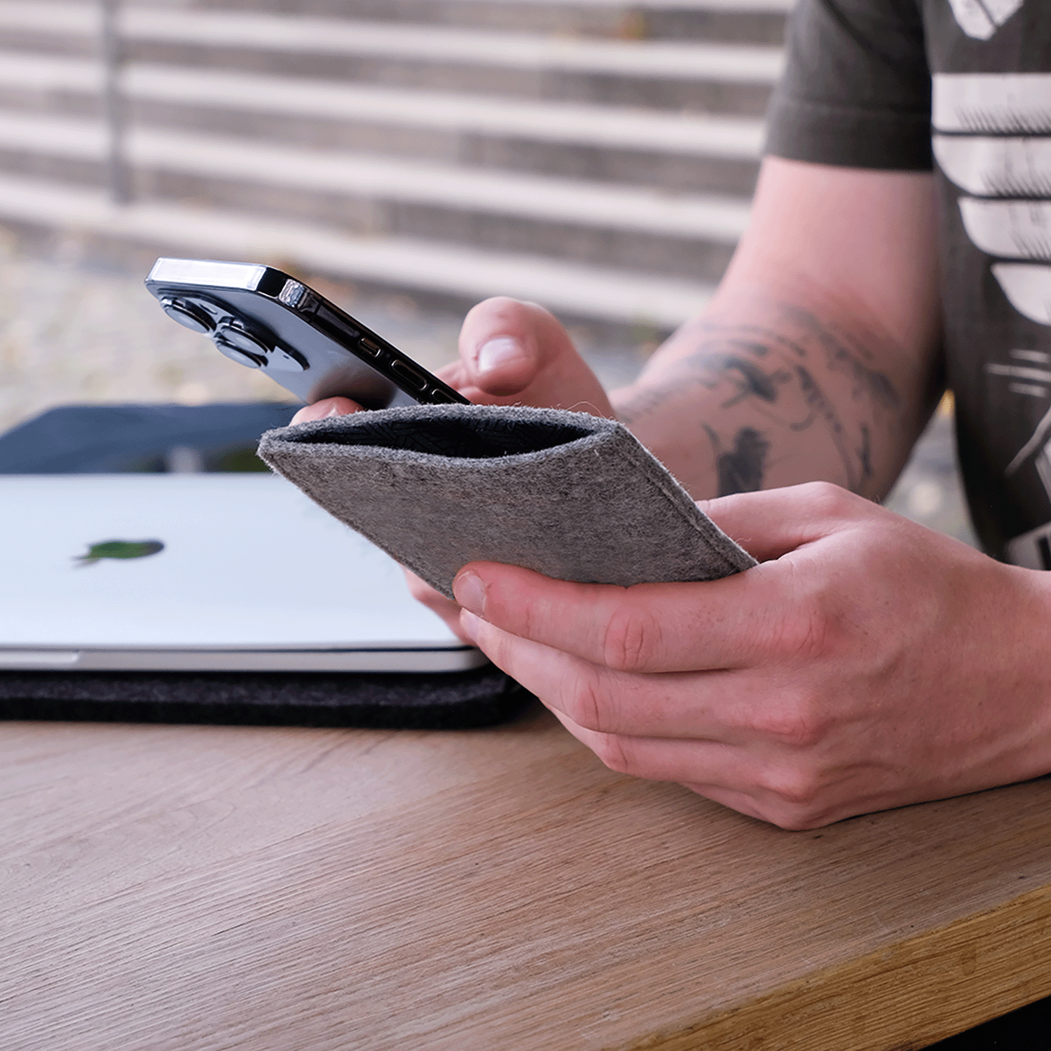 Handytasche für Samsung Galaxy M52 | aus Filz und Bio-Baumwolle | hellgrau - shapes | Modell "LET"