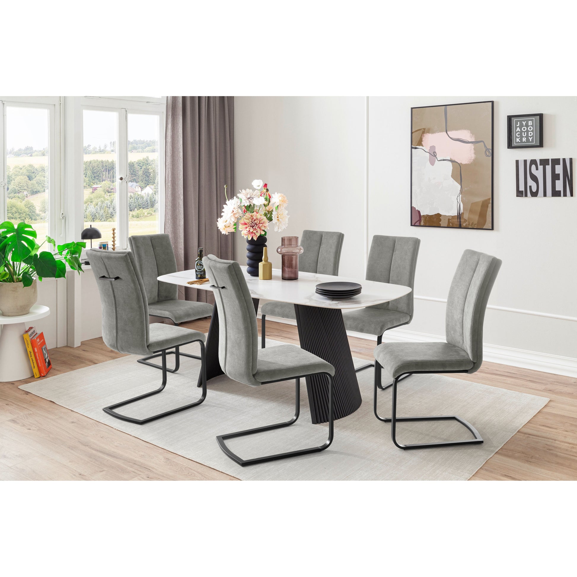 Hudson Schwinstuhl mit Griff – Vierer-Set in Vintage Veloursoptik vereint zeitlosen Charme mit praktischer Vielseitigkeit. Das Velours-Polyester-Gewebe sorgt für eine edle Optik und angenehme Haptik, während das robuste Gestell in Schwarz matt lackiert oder Edelstahl gebürstet je nach Stilrichtung überzeugt.