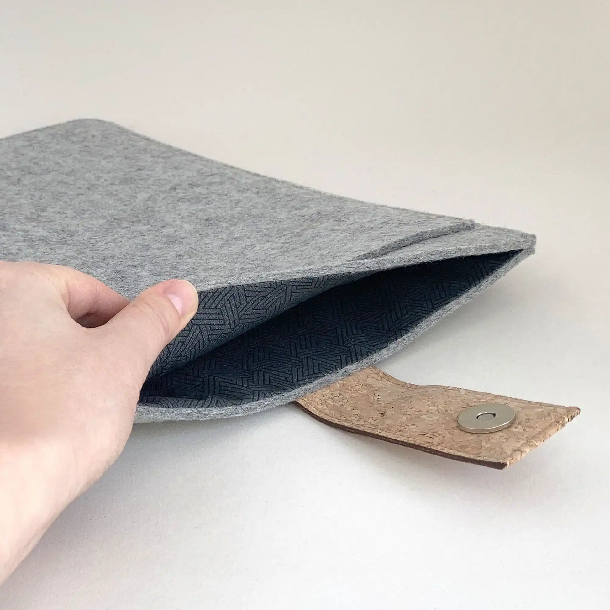 Hülle für Asus Pro | mit Magnetverschluss und extra Fach | hellgrau - Tracks | Modell "HAKA"