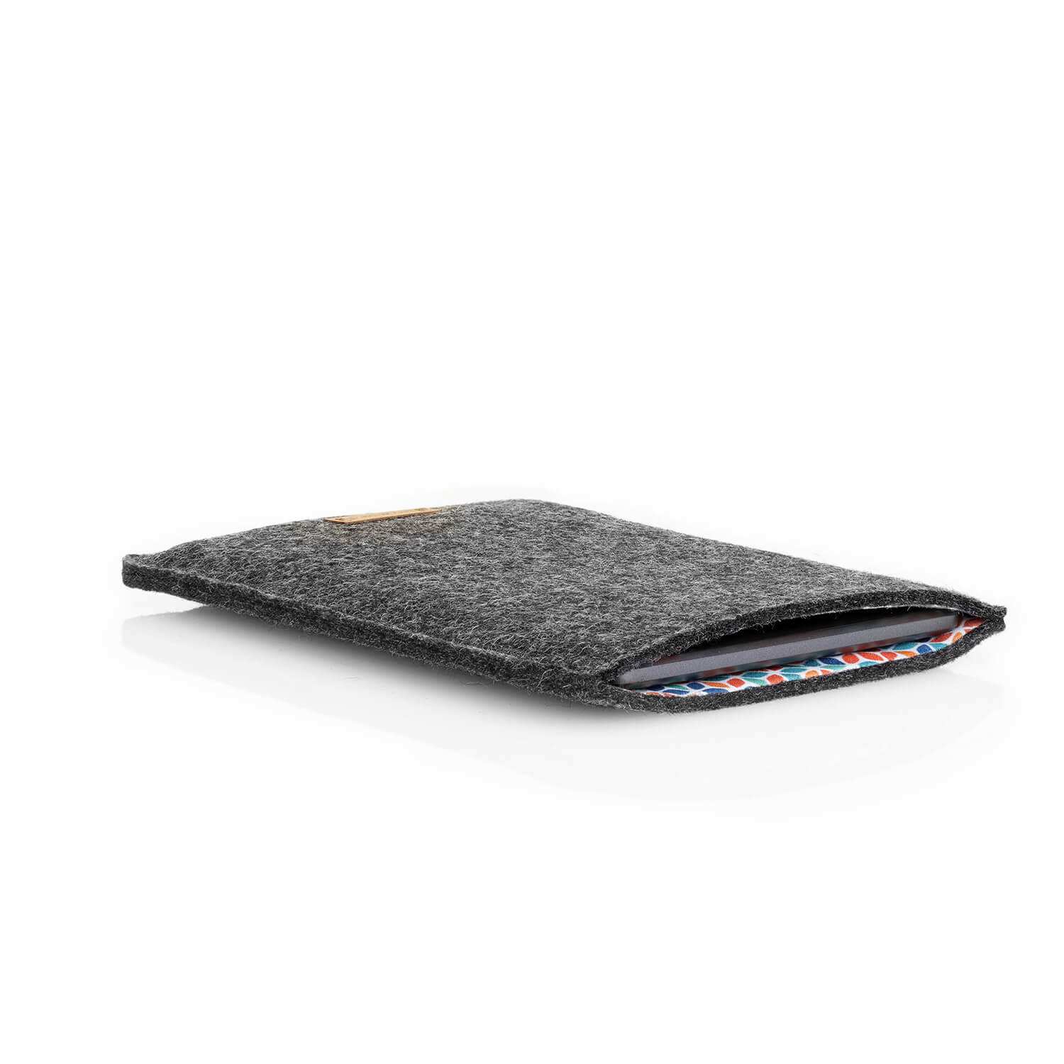 Hülle für Onyx Boox Magellan 5 | aus Filz und Bio-Baumwolle | anthrazit - colorful | Modell "LET"
