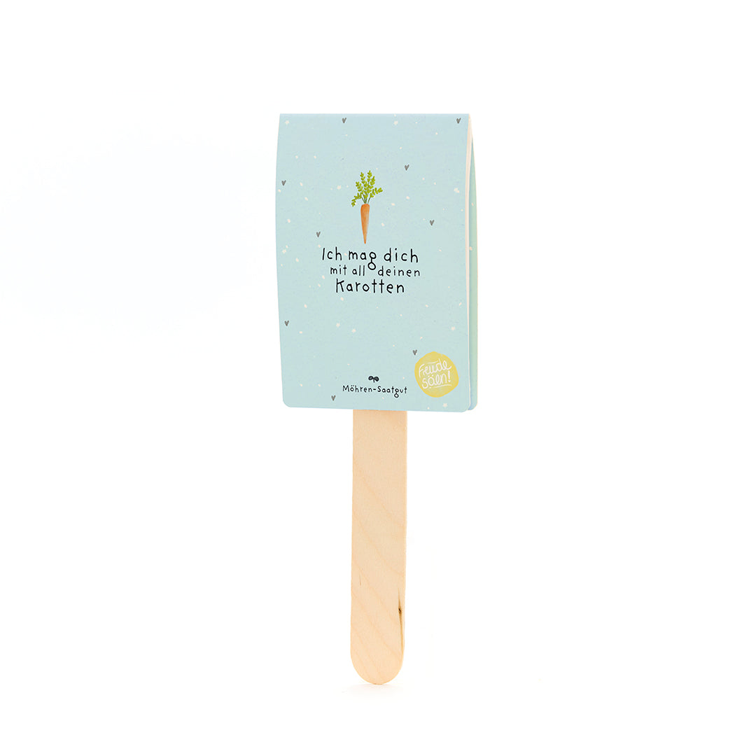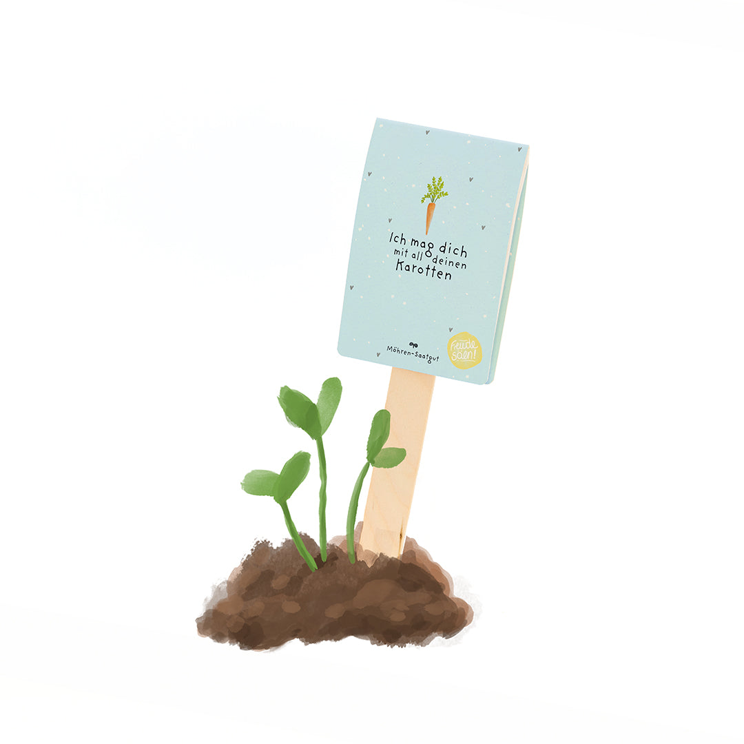 Ein liebevoller Gruß mit Augenzwinkern: Dieser charmante Saatgruß bringt Zuneigung zum Wachsen – ganz wörtlich! Mit Möhren-Saatgut und dem charmanten Spruch wird daraus eine kleine Geste voller Herz und Humor. Auf der Rückseite ist Platz für deinen Namen und den der beschenkten Person – für eine ganz persönliche Botschaft.