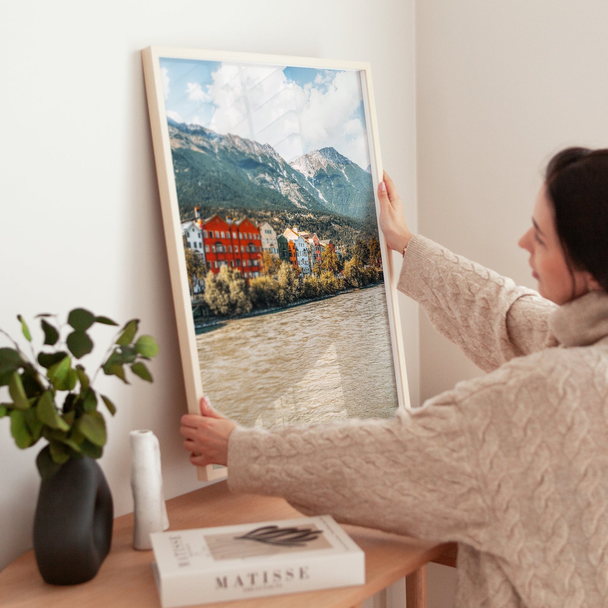 | Bring a pop of colour and alpine charm into your space with this fine art print of Innsbruck, Austria. Featuring the city’s iconic row of colourful riverside homes with the dramatic backdrop of the Nordkette mountains, this image captures the blend of urban vibrance and alpine beauty. A perfect piece for lovers of Austria, mountain towns, or scenic European travel memories. What Makes Our Prints SpecialEach print is made on 200gsm premium matte fine art paper, offering vibrant colour, crisp detail, and a smooth, non-reflective finish that looks natural in any interior. Every piece is unframed and produced responsibly using FSC-certified paper and renewable energy — supporting sustainable craftsmanship and small-scale production. Choose the Perfect SizeAvailable in a range of easy-to-frame sizes: