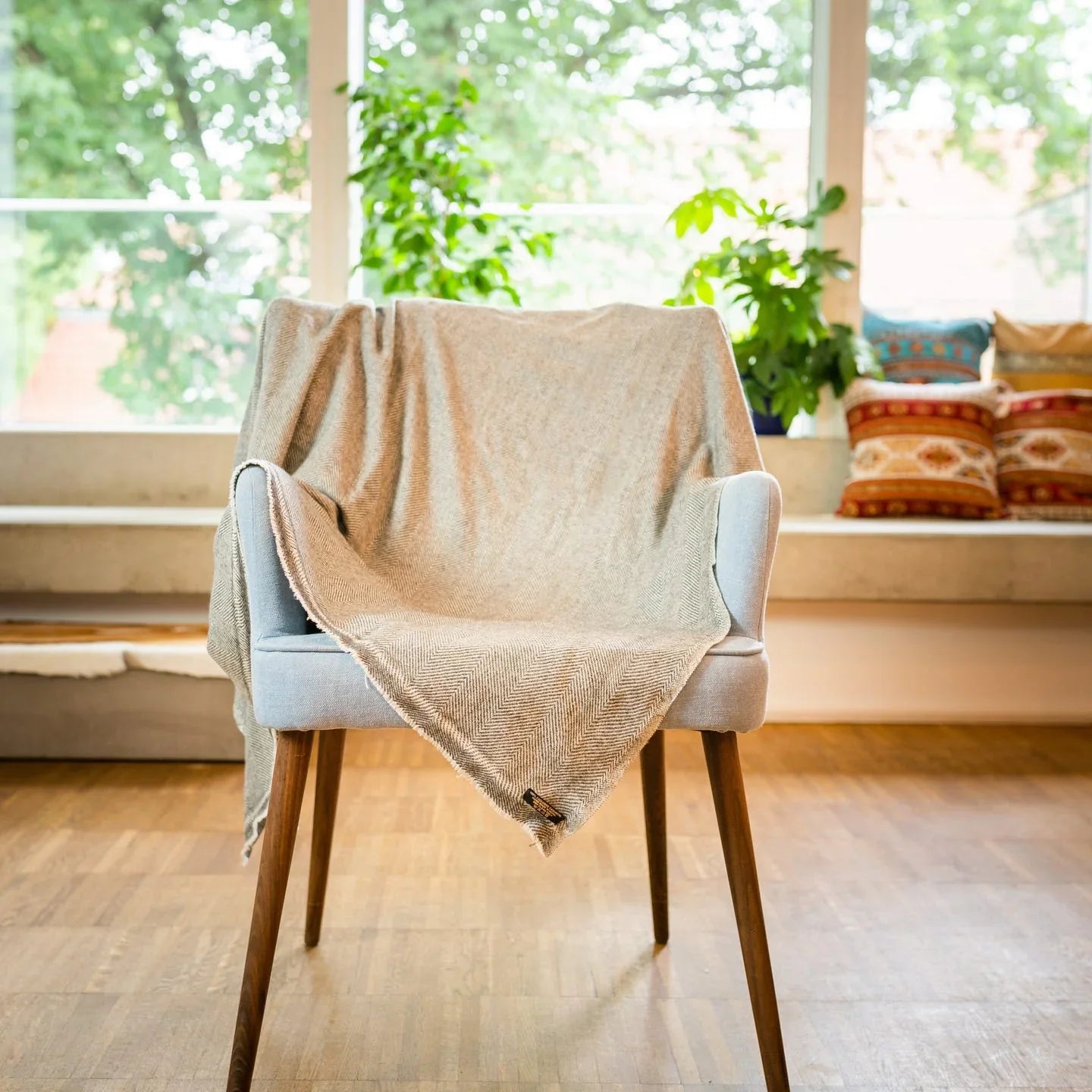 Kaschmirdecke mit Fischgratmuster - grau - 135 x 270cm