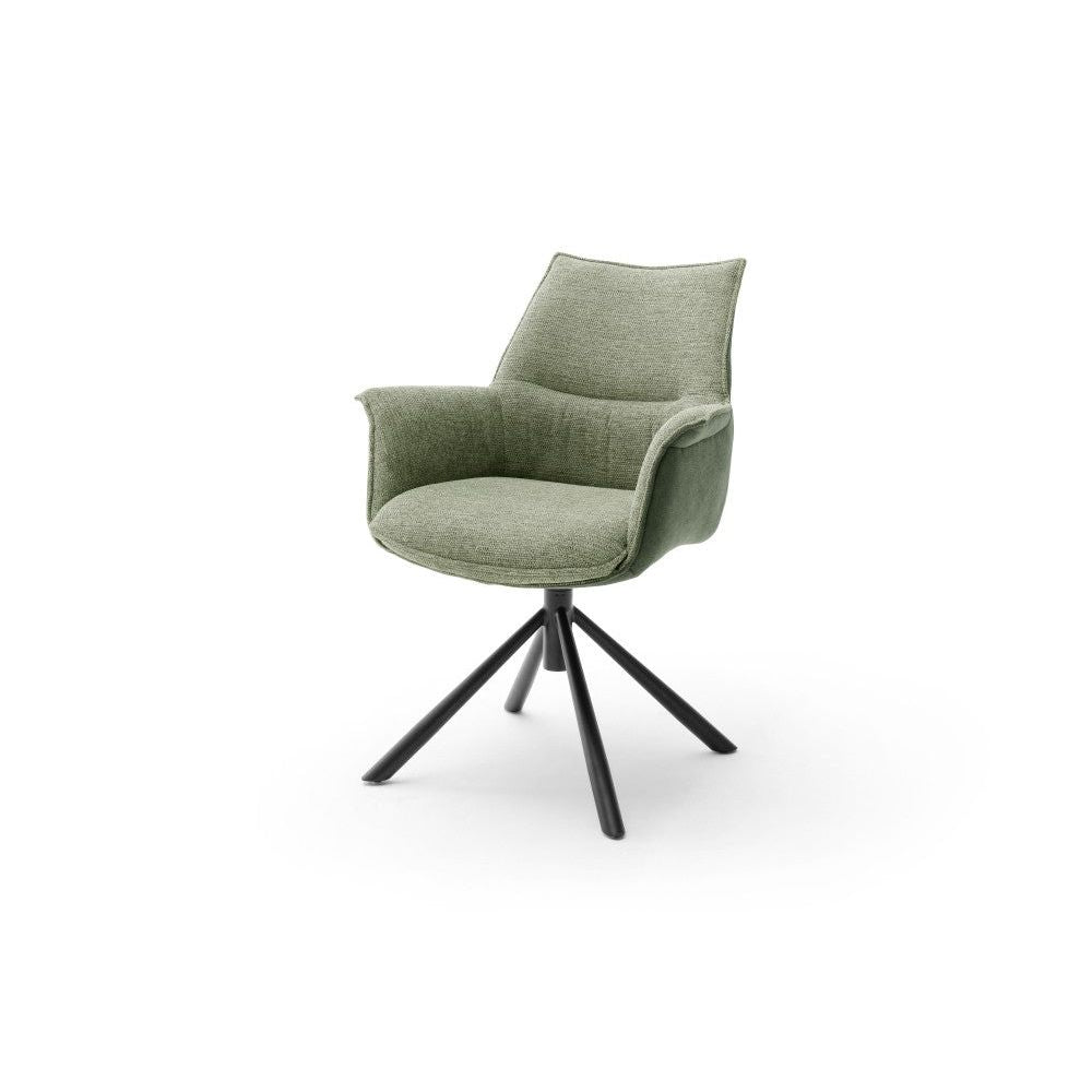 Durch das runde, konisch zulaufende Gestell aus schwarz matt lackiert wirkt der Stuhl leicht und stilvoll, bleibt aber stabil. Die 360°-Drehbarkeit mit Nivellierung erlaubt flexiblen Einsatz rund um den Tisch oder im Wartebereich.