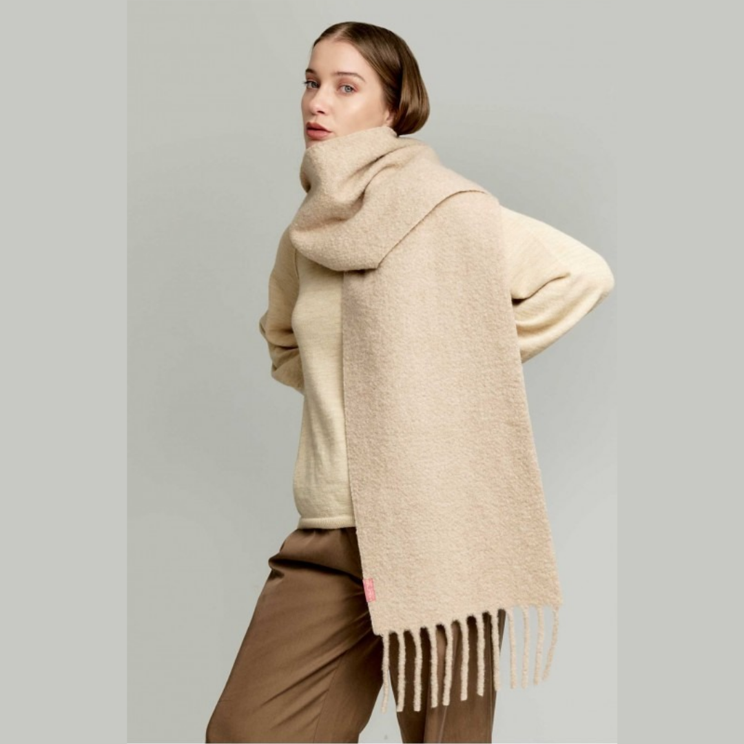 Mit seiner einheitlichen Farbgebung und der feinen Bouclé-Struktur lässt sich der YAMILETH Webschal vielseitig kombinieren – ob zu Mantel, Blazer oder Freizeitjacke. Die zarten Fransenkanten verleihen ihm eine dezente Struktur und unterstreichen die elegante, hochwertige Optik.