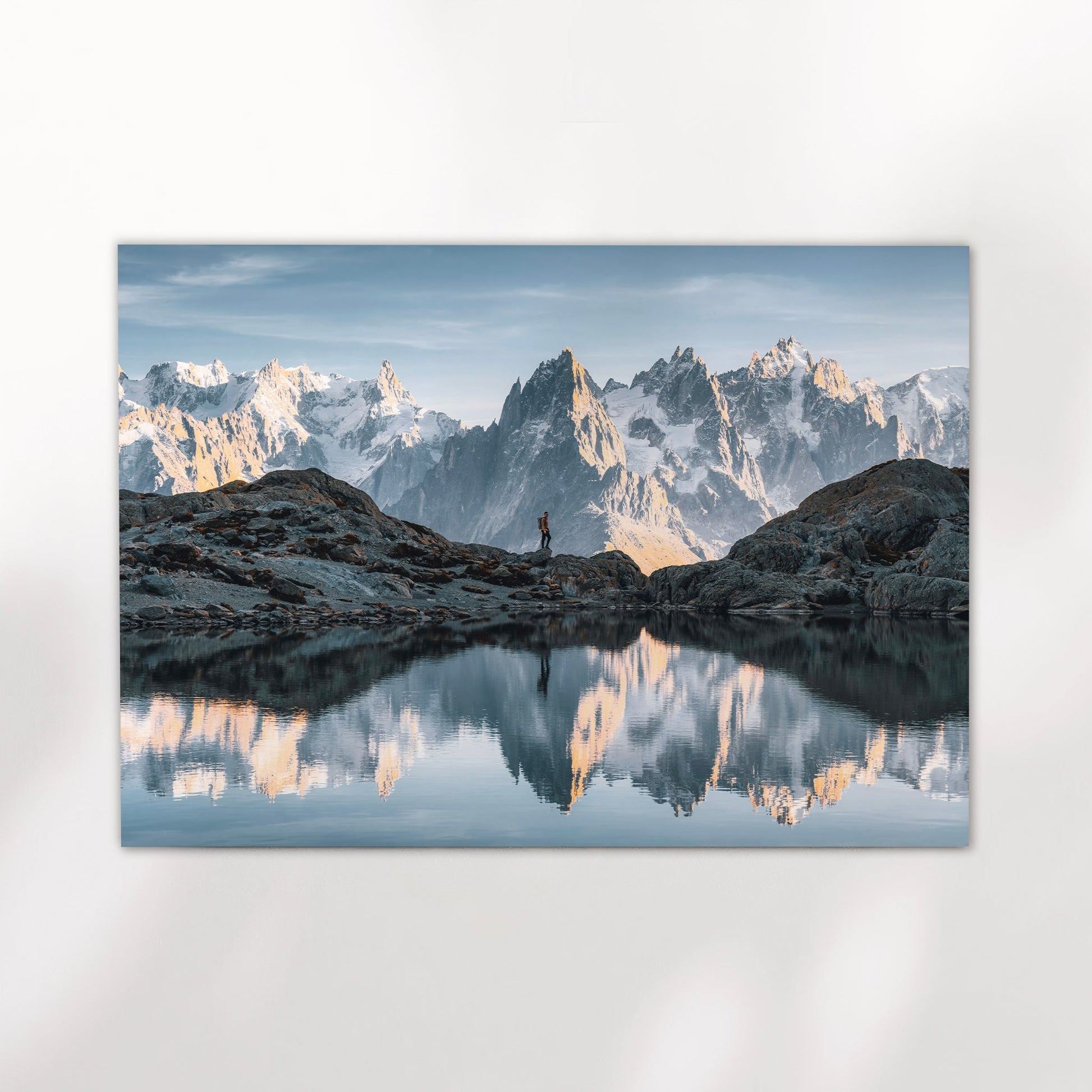 Bring the beauty of the French Alps into your home with this stunning Chamonix wall art print of Lac Blanc. Capturing the serene reflection of alpine peaks, this elegant artwork is perfect for any interior style.