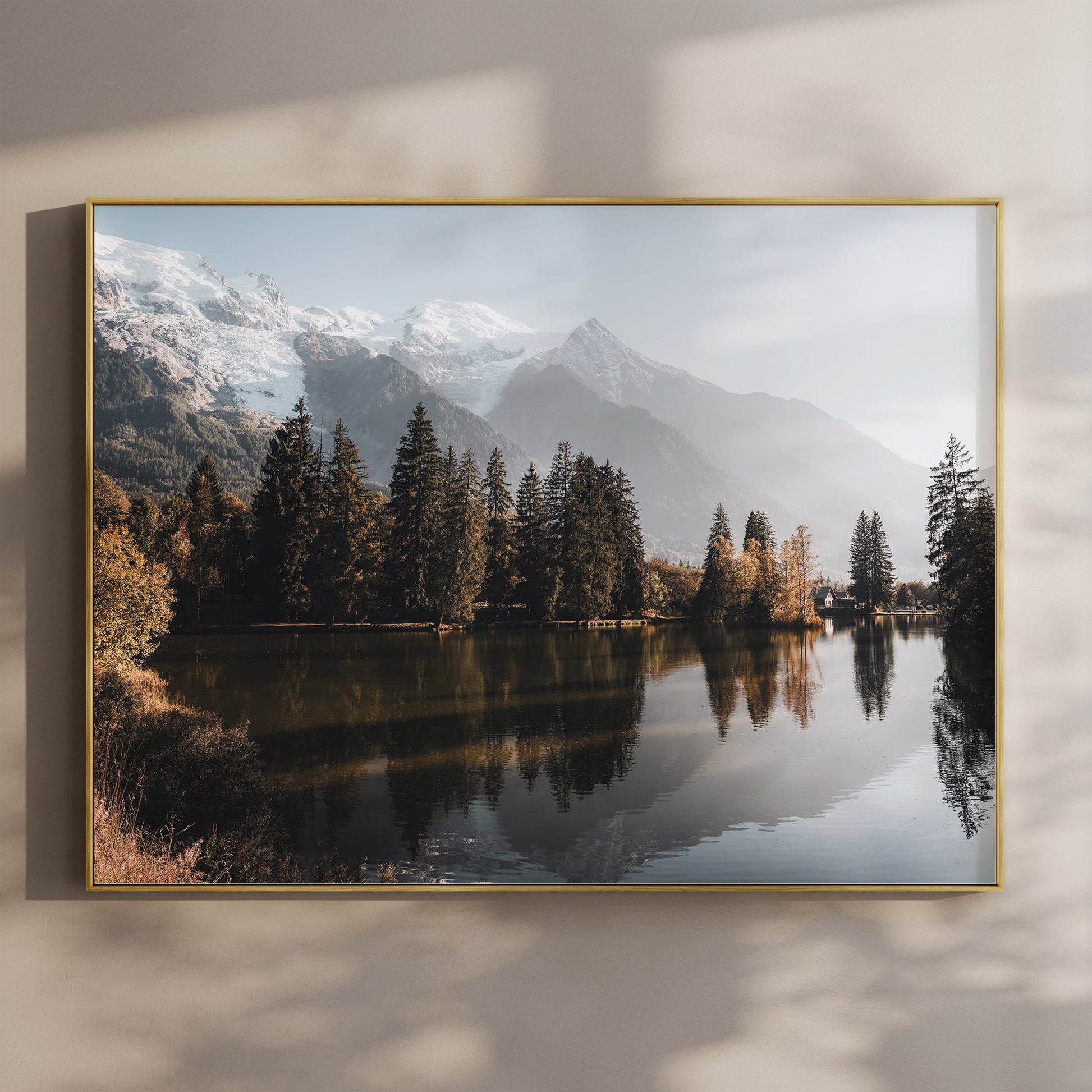 Bring the tranquil beauty of Chamonix to your space with this Lac des Gaillands wall art. Featuring serene reflections, snow-capped mountains, and alpine trees, this premium landscape print adds a touch of nature’s elegance to any interior. Perfect for mountain lovers and art enthusiasts.