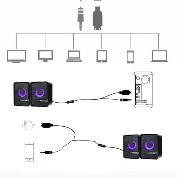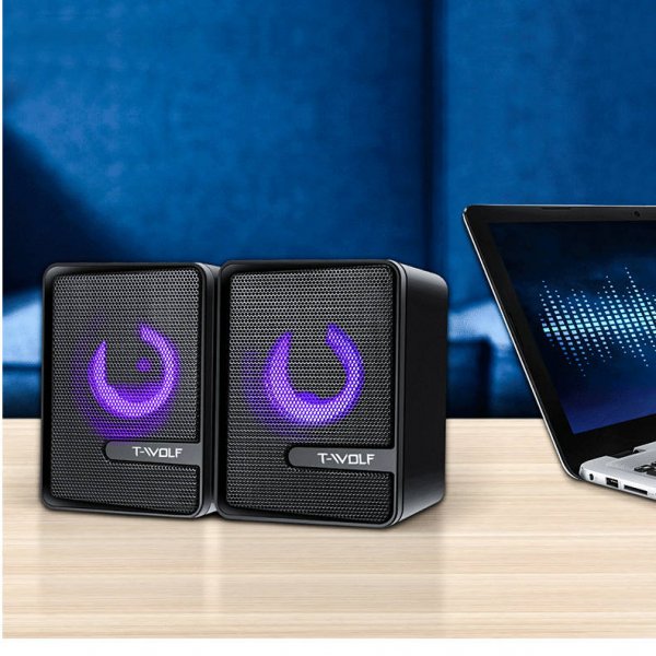 Lautsprecher Stereo Subwoofer Audio 3.5 mm AUX Klinke mit RGB LED in Schwarz