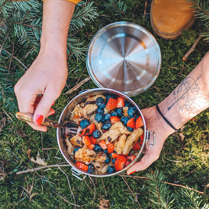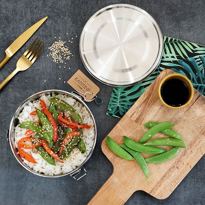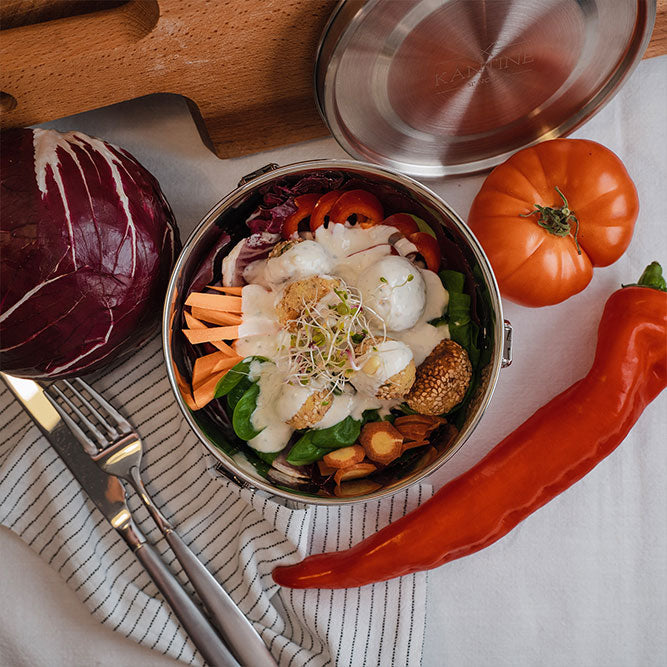 Hunger unterwegs? Mit der Lunchbox Tiffin von Kantine 51° Nord® gehören Kleckern, Gerüche und Plastikprobleme der Vergangenheit an. Ob Pasta, Curry, Salat oder Obst – diese Frischhaltedose vereint Stil, Robustheit und Umweltbewusstsein in einem kompakten Format.