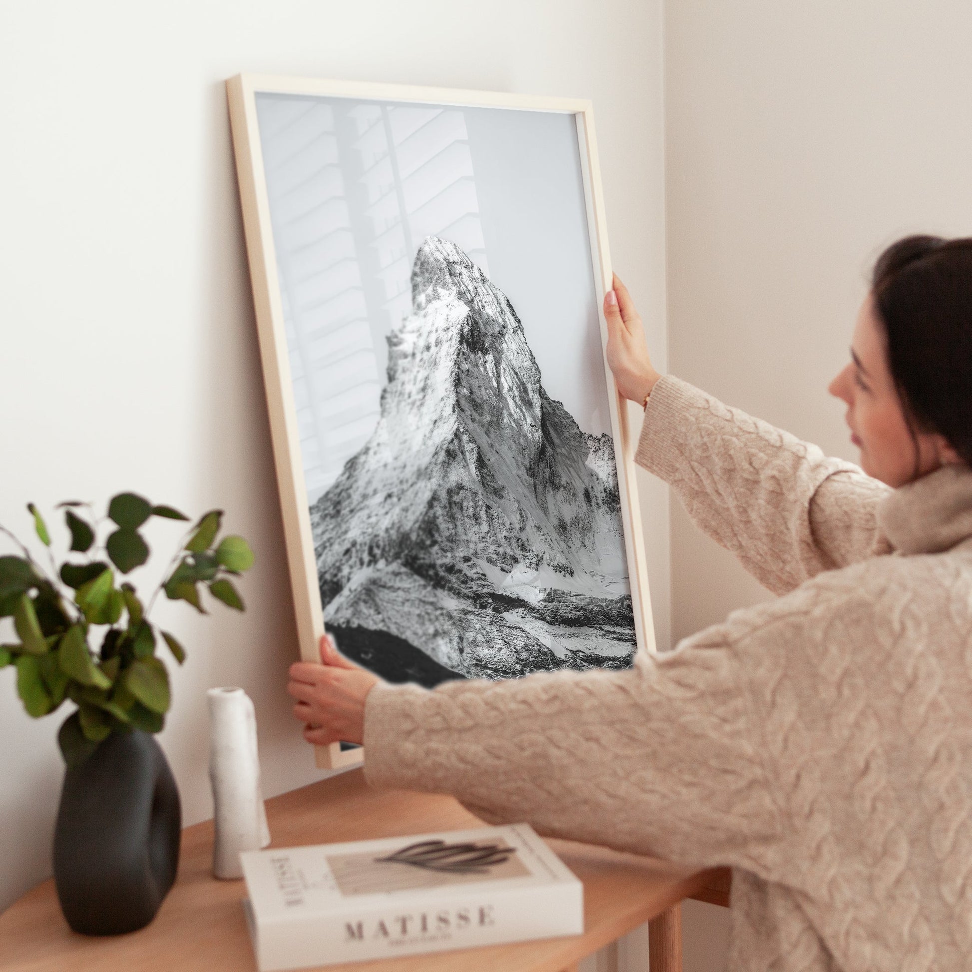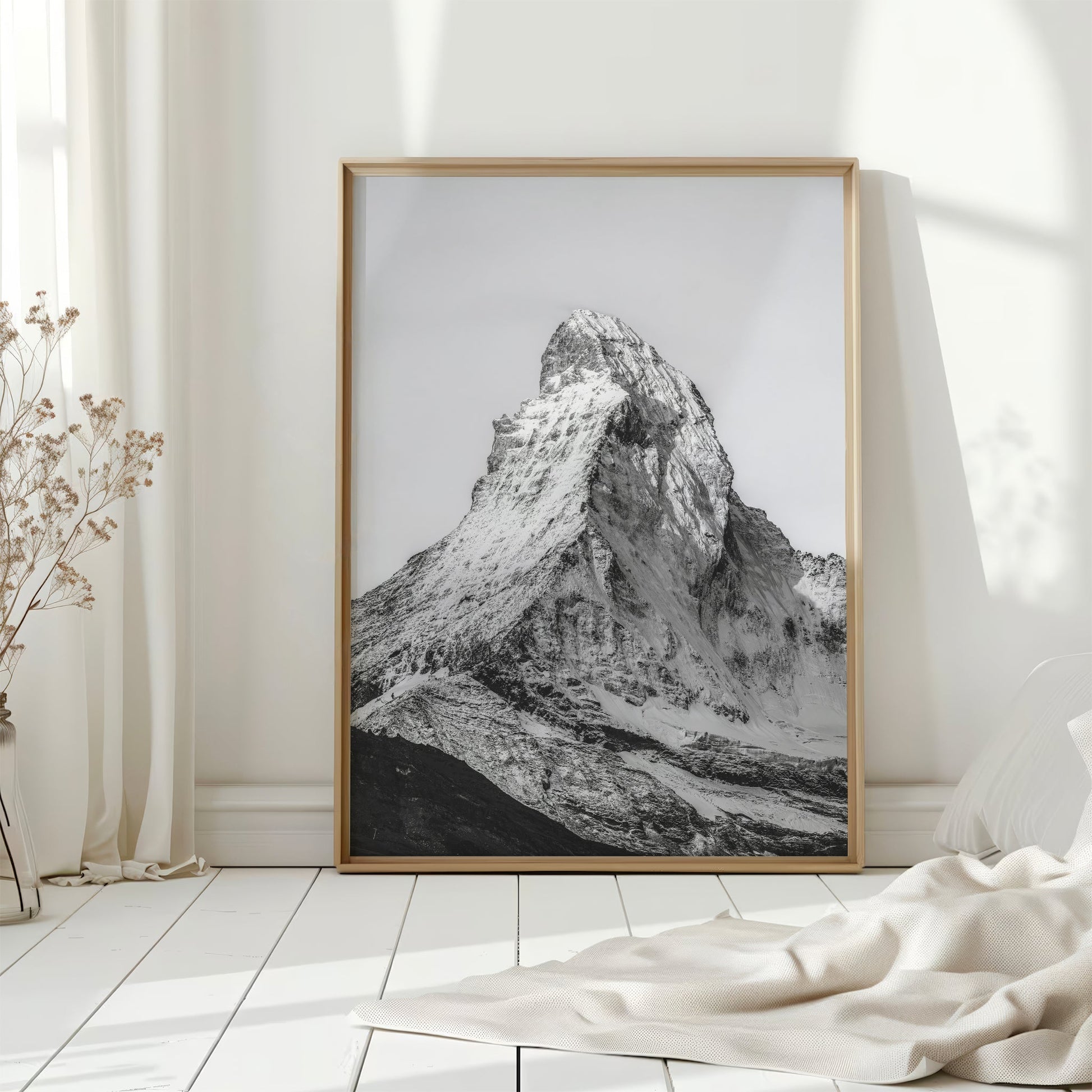 A bold black-and-white capture of the Matterhorn, perfect for a refined, minimalist space.