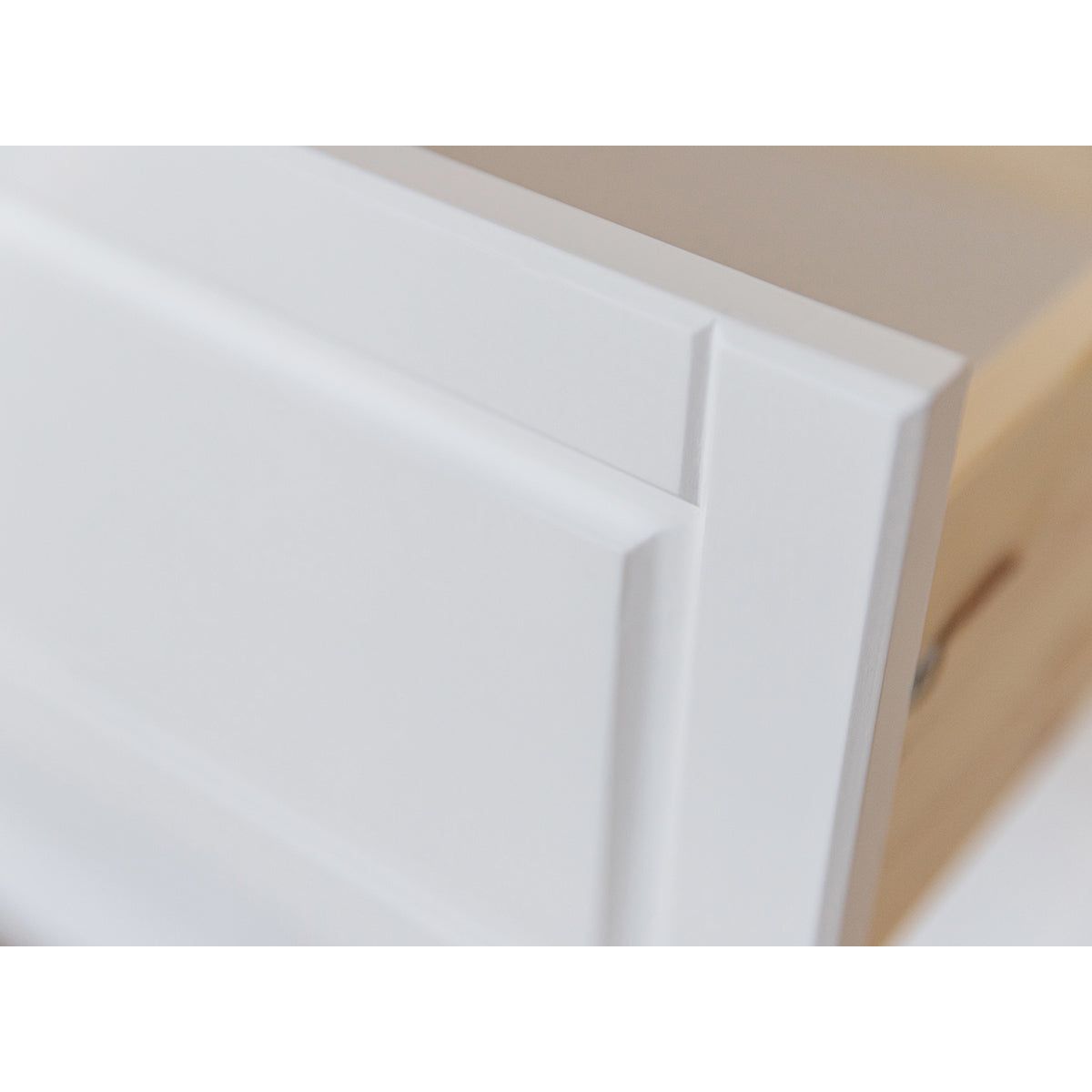 Neben der sorgfältigen Auswahl der Materialien ist uns auch die Ästhetik wichtig. Deshalb versuchen wir, die natürliche Schönheit nicht zu verschleiern, sondern ihre natürlichen Eigenschaften zu bewahren. Dies wird durch die mit Wasserbeize und Wasserlack bedeckte Oberseite bestätigt, die die Ringe und Knoten hervorhebt. Der weiße Korpus und die Fronten sind auf die weiße Lackierung mit 85 % Deckung zurückzuführen. Die Holzkommode verfügt über Soft-Close-Führungen und die Fronten sind mit Holzknopfgriffen ausgestattet.