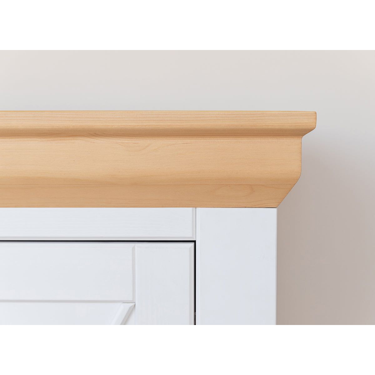 Es lässt sich nicht sagen, welche Möbel wir bei der Einrichtung des Wohnzimmers häufiger wählen. Kommoden oder Vitrinen? Beide sind genauso oft nützlich. Wenn Sie jedoch auf der Suche nach einer kleinen, aber praktischen Kommode sind. Milano Elite ist perfekt – ausgestattet mit Schubladen und einem Schrank schafft es einen idealen Aufbewahrungsort. Rahmen an den Fronten, Holzknaufgriffe und ein gefräster Sockel unterstreichen den provenzalischen Stil.