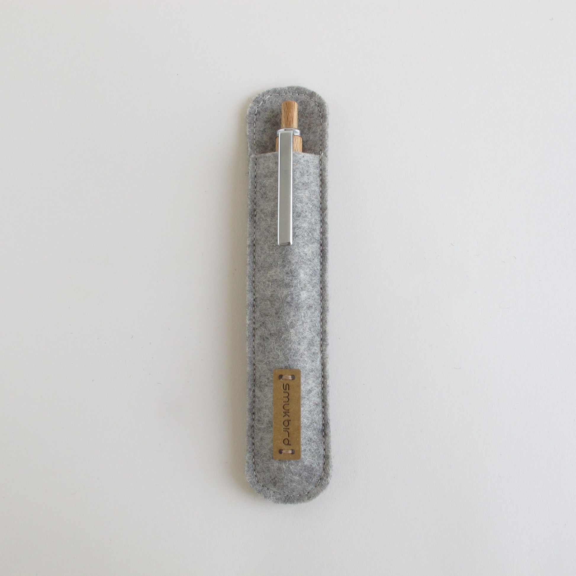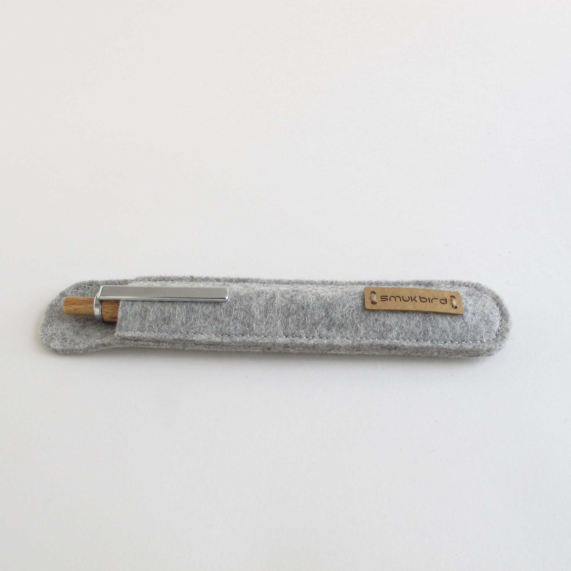 Nachhaltiges Filz Stiftetui aus 100% Wolle | Hellgrau | inkl. Kugelschreiber aus Holz