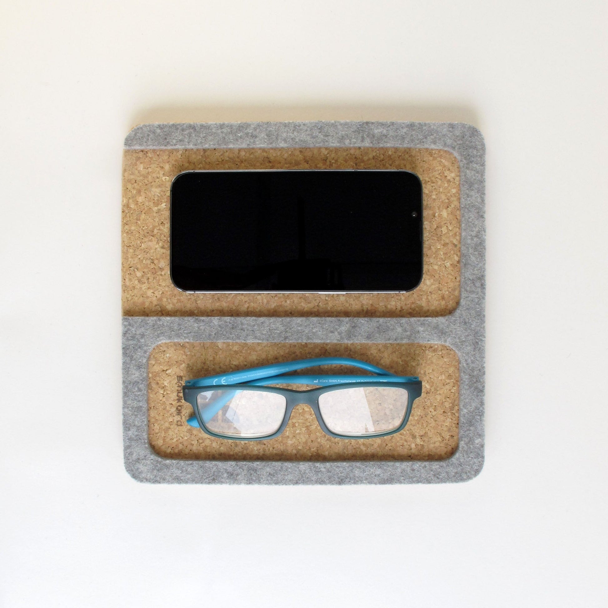 Organizer für Handy, Brille, Notizblock, Uhr & Co. | aus Filz und Kork | hellgrau
