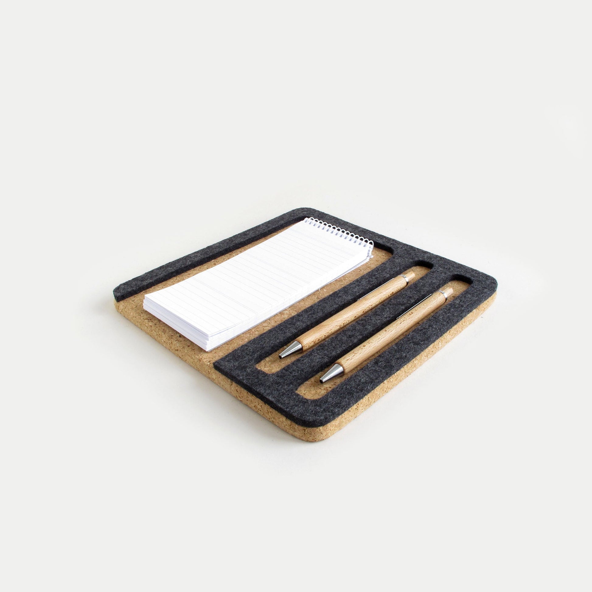 Organizer für Handy, Notizblock & Stifte | aus Filz und Kork | anthrazit