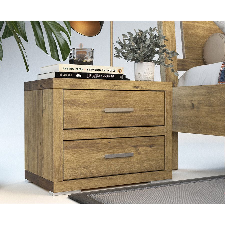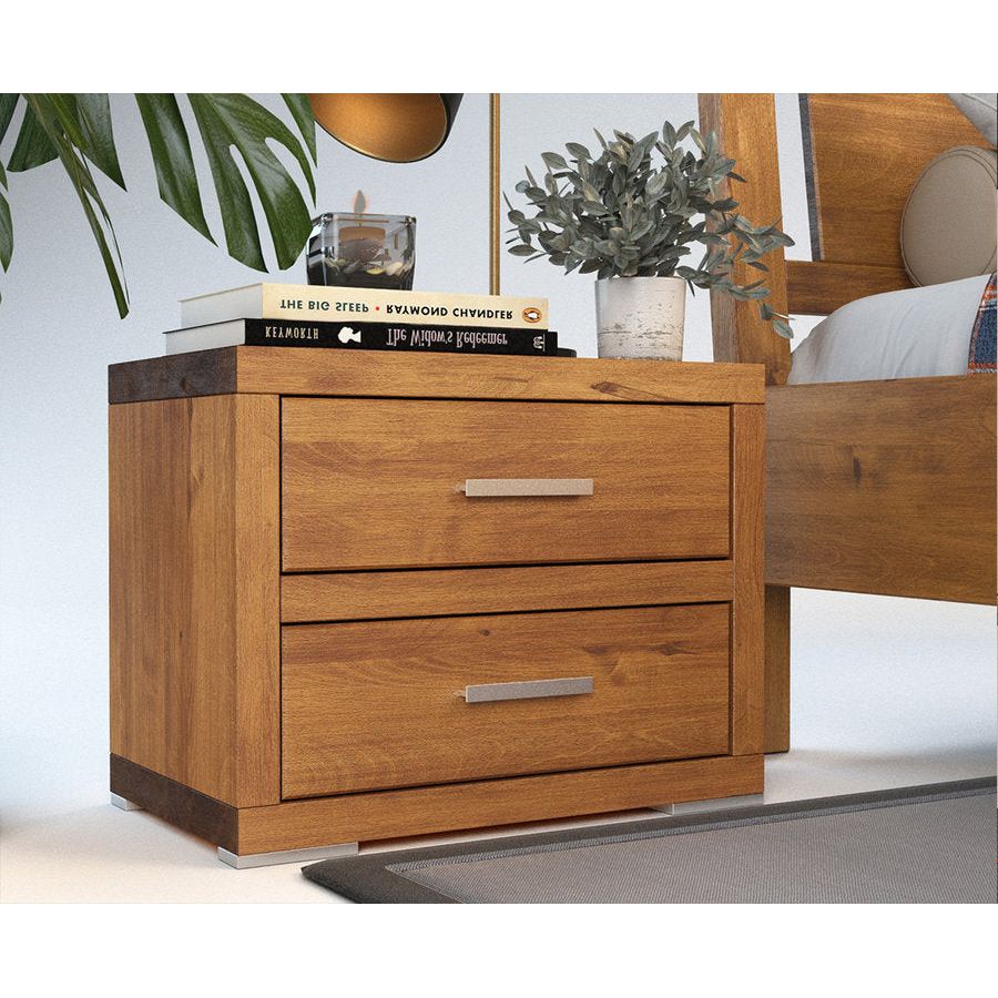 Pedenza Massivholz Nachttisch mit 2-Schubladen